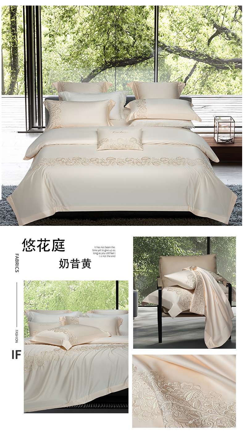 (总)诗黛尔 2026春夏新款长绒棉刺绣四件套黎境系列,黎境-香槟金,黎境-极光蓝,黎境-卡其色,黎境-落樱粉,黎境-绅士灰
