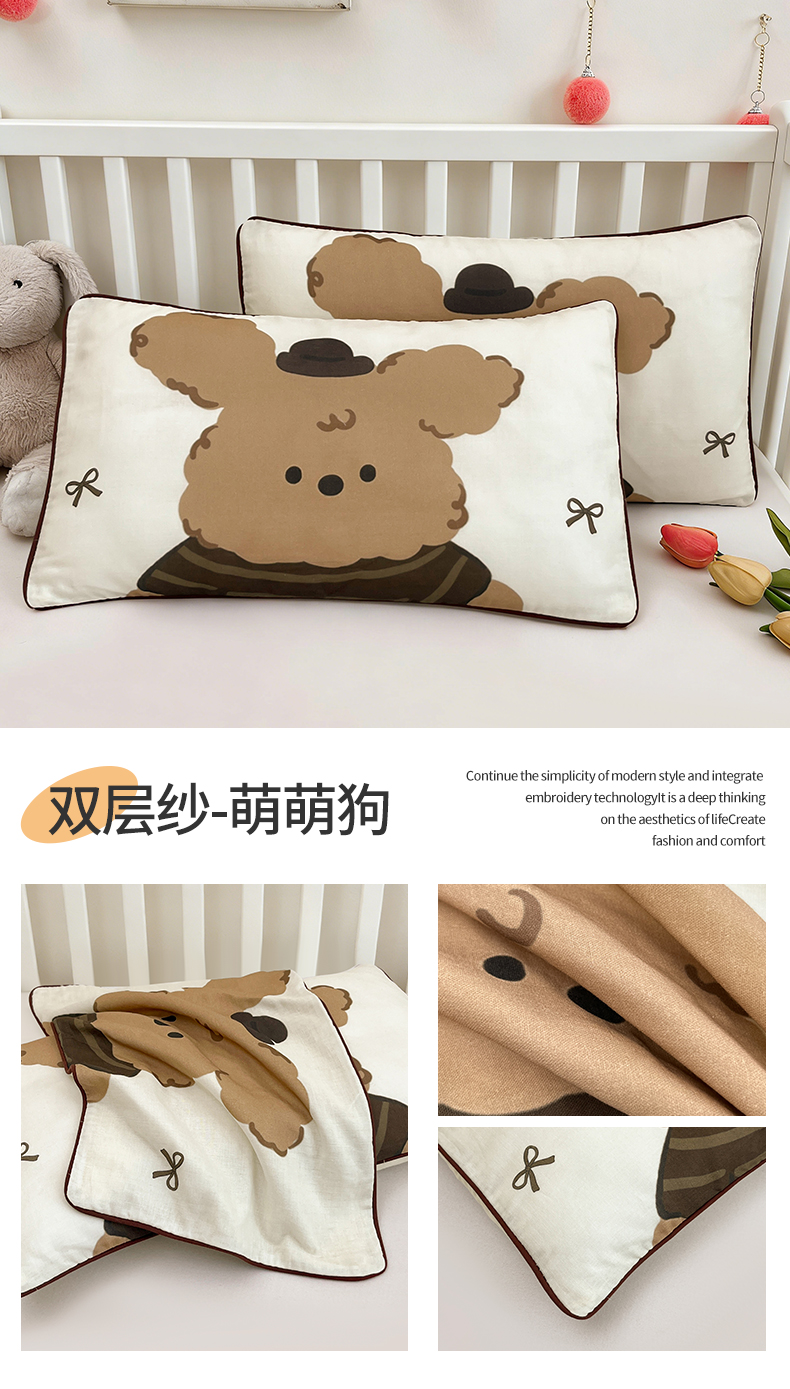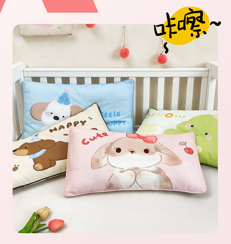 (总)雯豆家纺 2026新款全棉双层纱布枕套儿童卡通枕芯定位纯棉大版枕头套