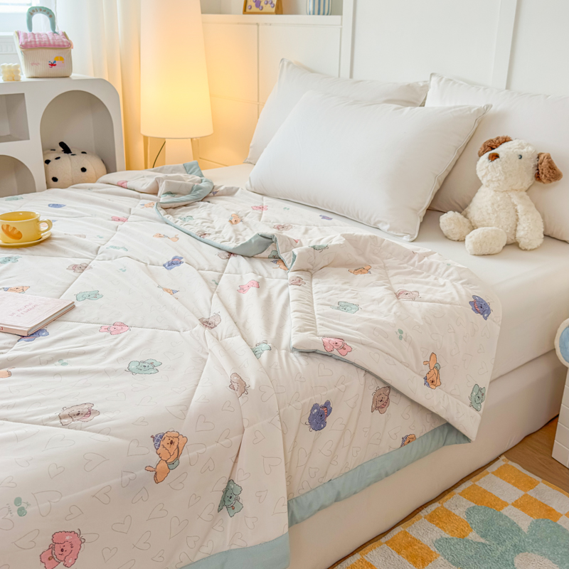 商品名称:帕拉美拉 2026新款A类印花冰凉丝凉感丝手包大宽边夏被 彩虹奶狗