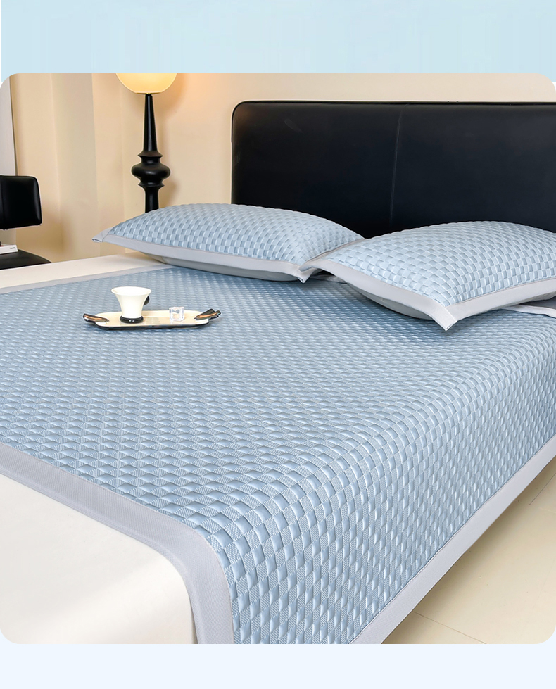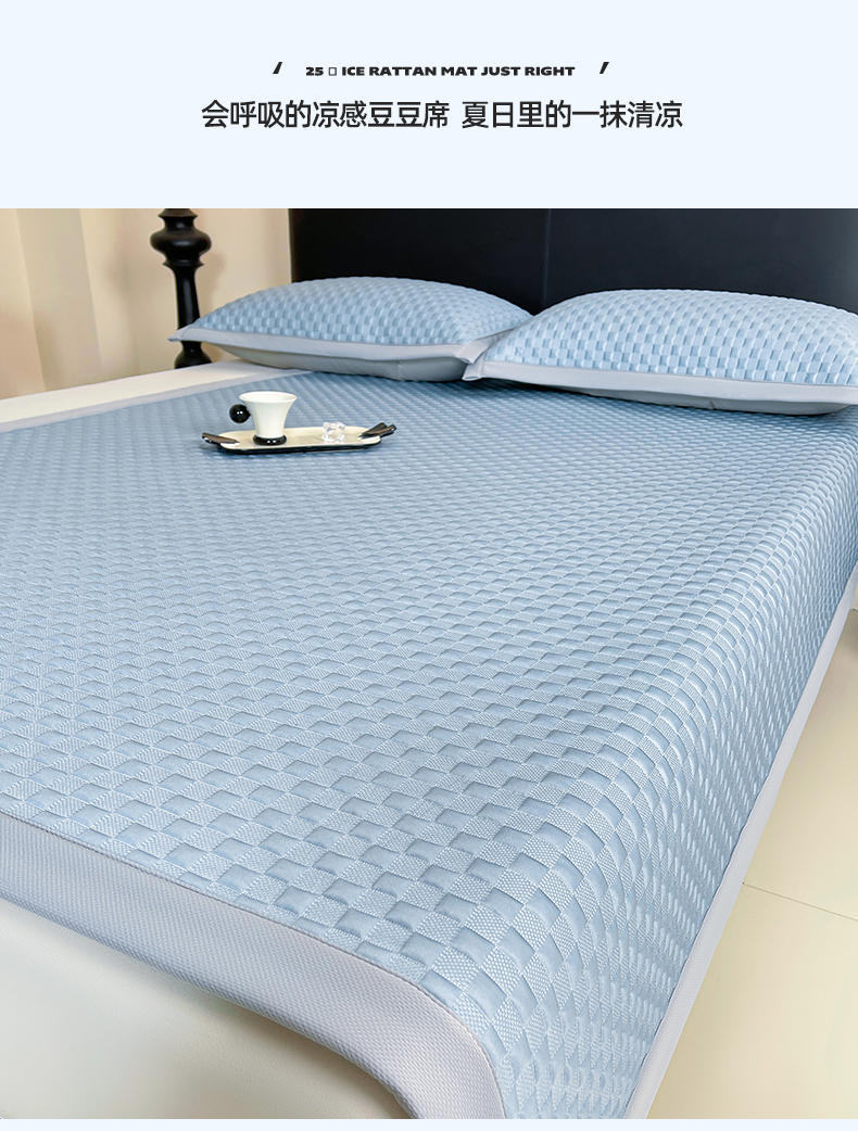 (总)雯豆家纺 2026新款A类PE凉席三件套冰豆豆席A类纯色凉豆豆席子可水洗空调软席,方格款-海涛蓝,方格款-玛莎粉,方格款-清新绿,方格款-威尼斯灰