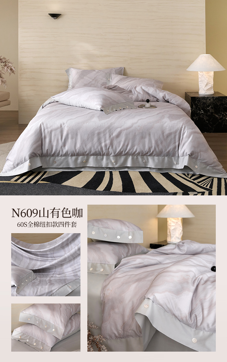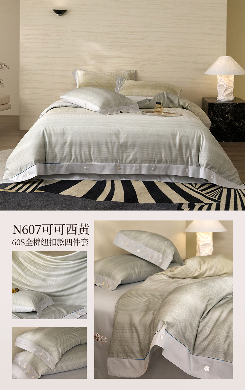 当前位置: 91家纺网 > 商品网购 > 床品套件 > 四件套 > 长绒棉四件套 > 梧桐树 2026新款60支长绒棉纯棉宽边纽扣系列四件套 N610格珊蓝