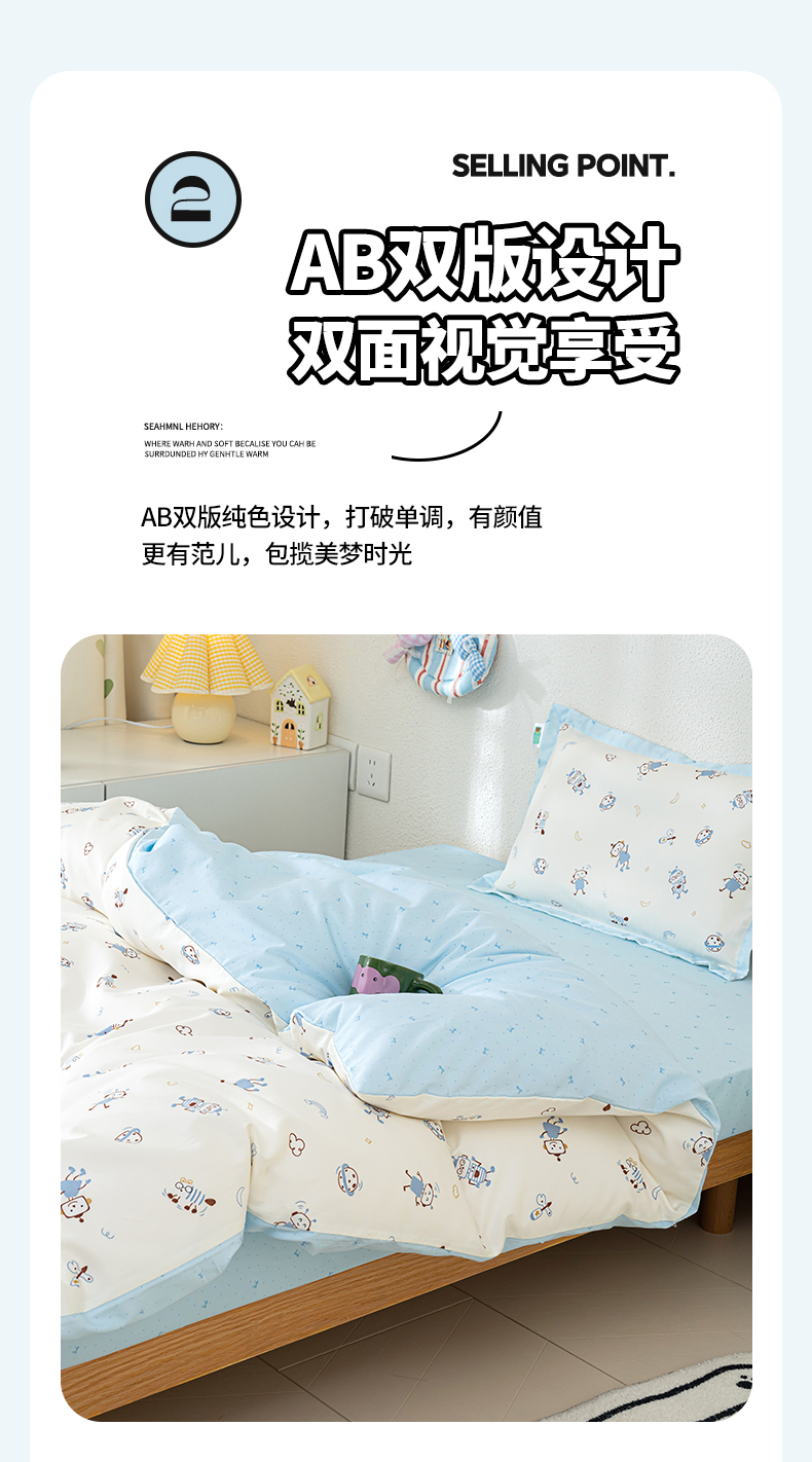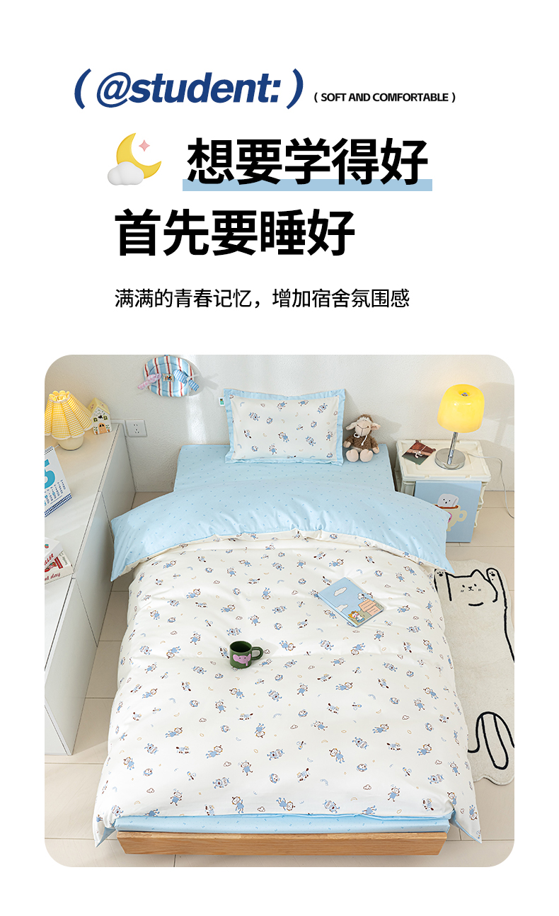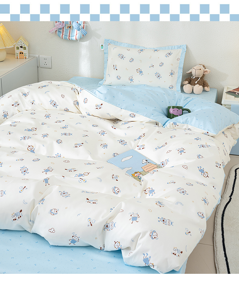 (总)良佐生活 2026年新款A类铂金精梳全棉学生三件套,甜心熊,挖机小分队,调皮象,福宝,乐兔粉,布布,太空探险,乐兔蓝