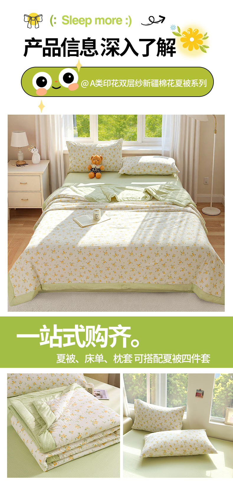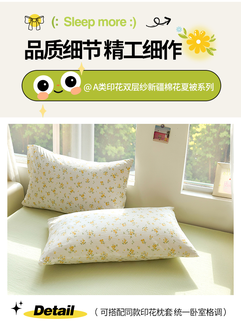 商品名称:晓时候 2026新款A类云感双层纱夏被棉花被小清新印花夏凉被空调被 安然入夏