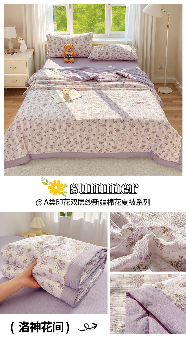 晓时候 2026新款A类云感双层纱夏被棉花被小清新印花夏凉被空调被 安然入夏