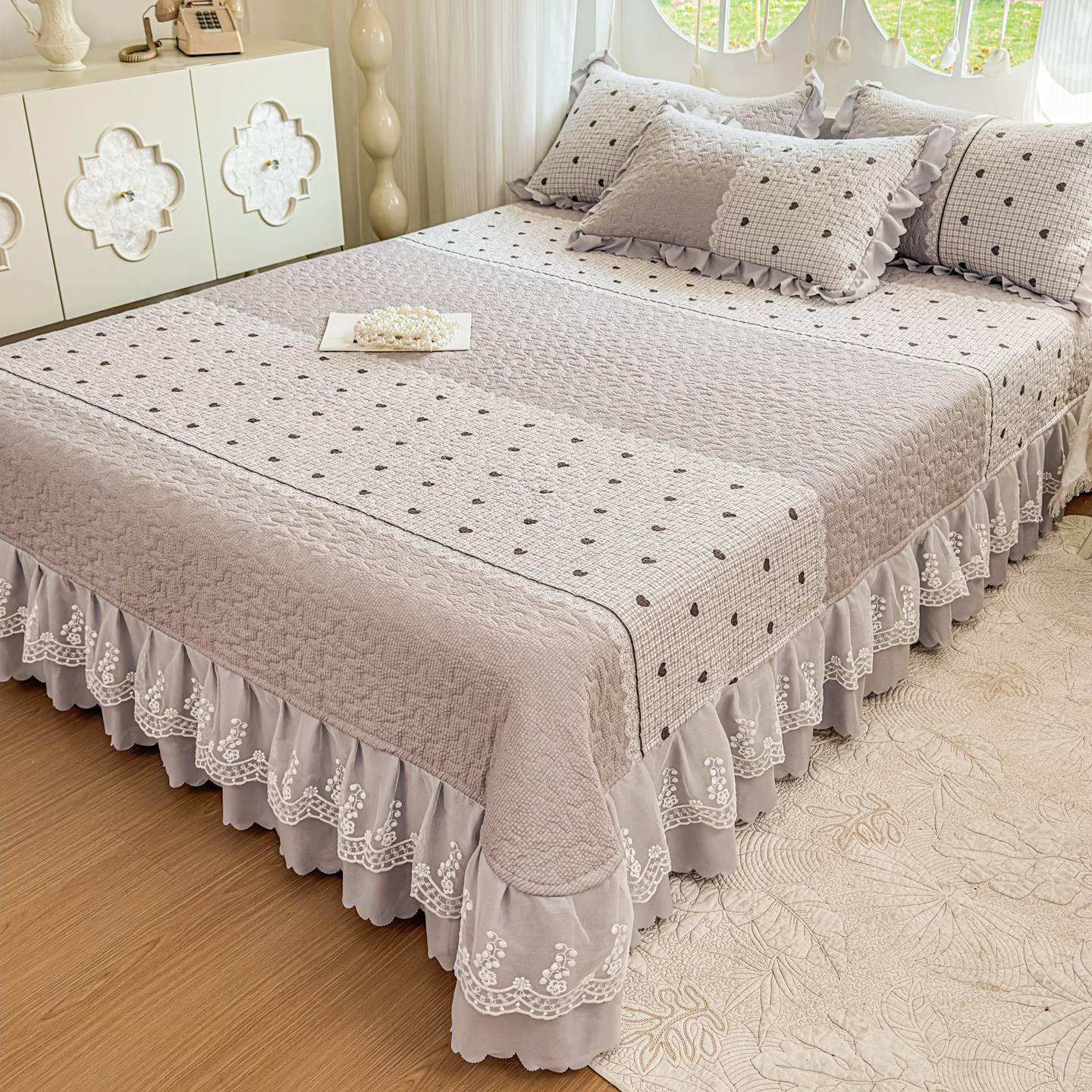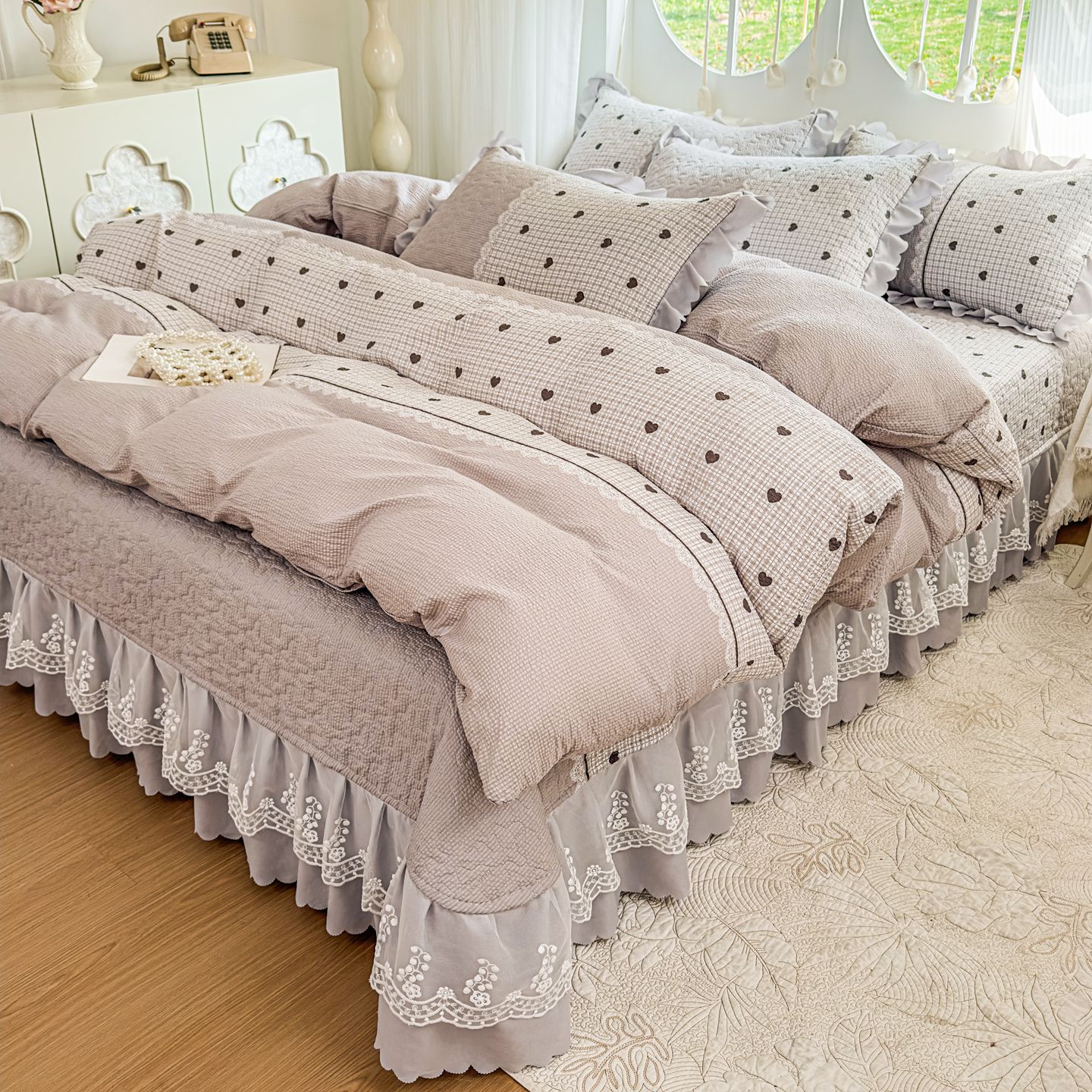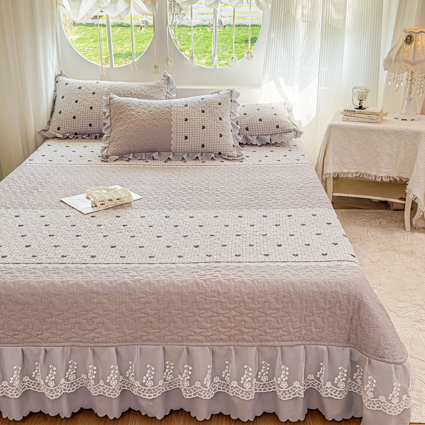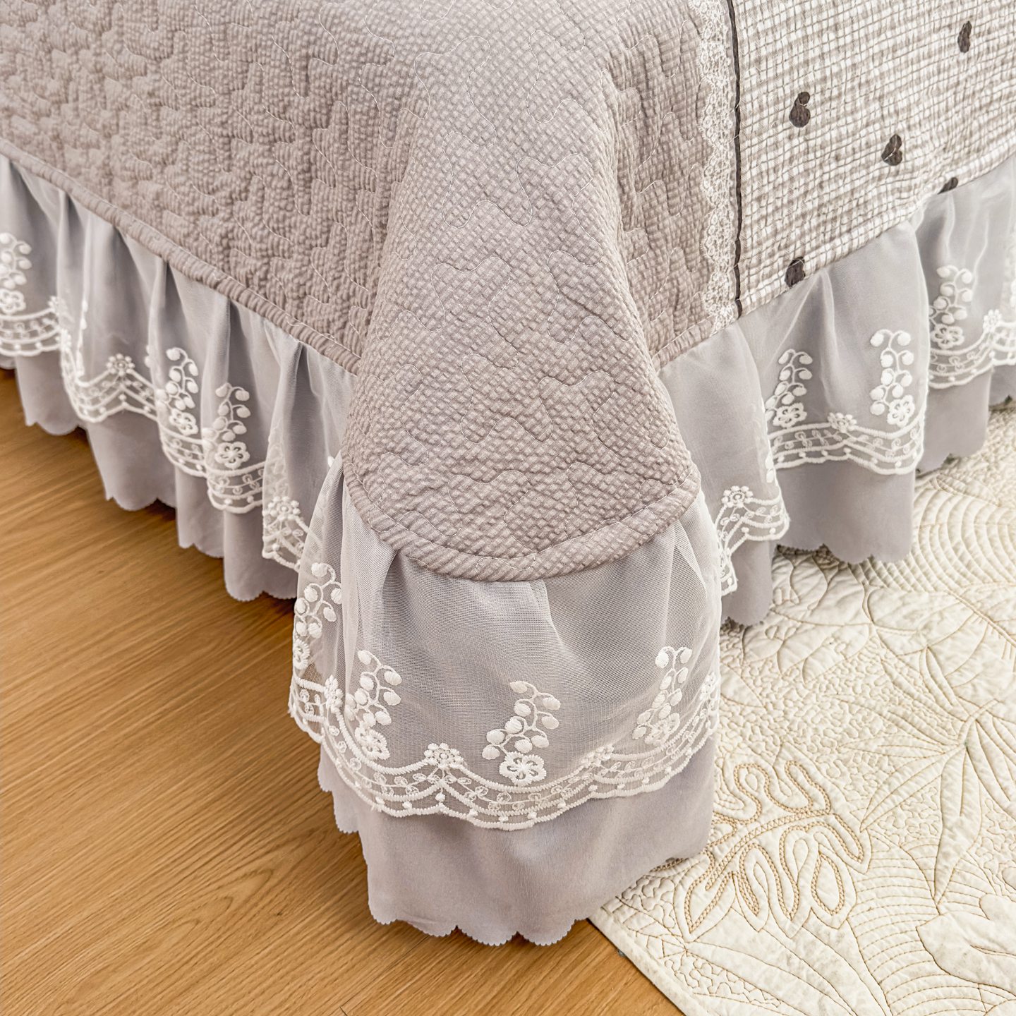 雅眠居 2026直播爆款泡芙棉双层蕾丝花边床盖四件套 甜心-灰