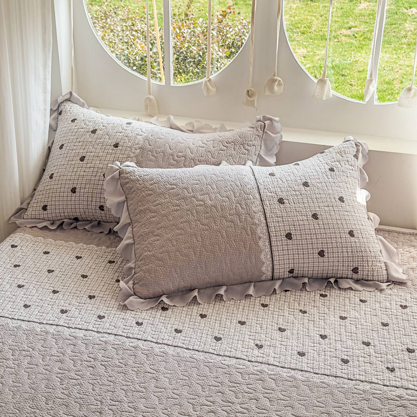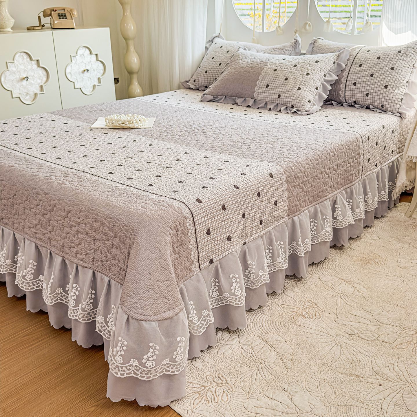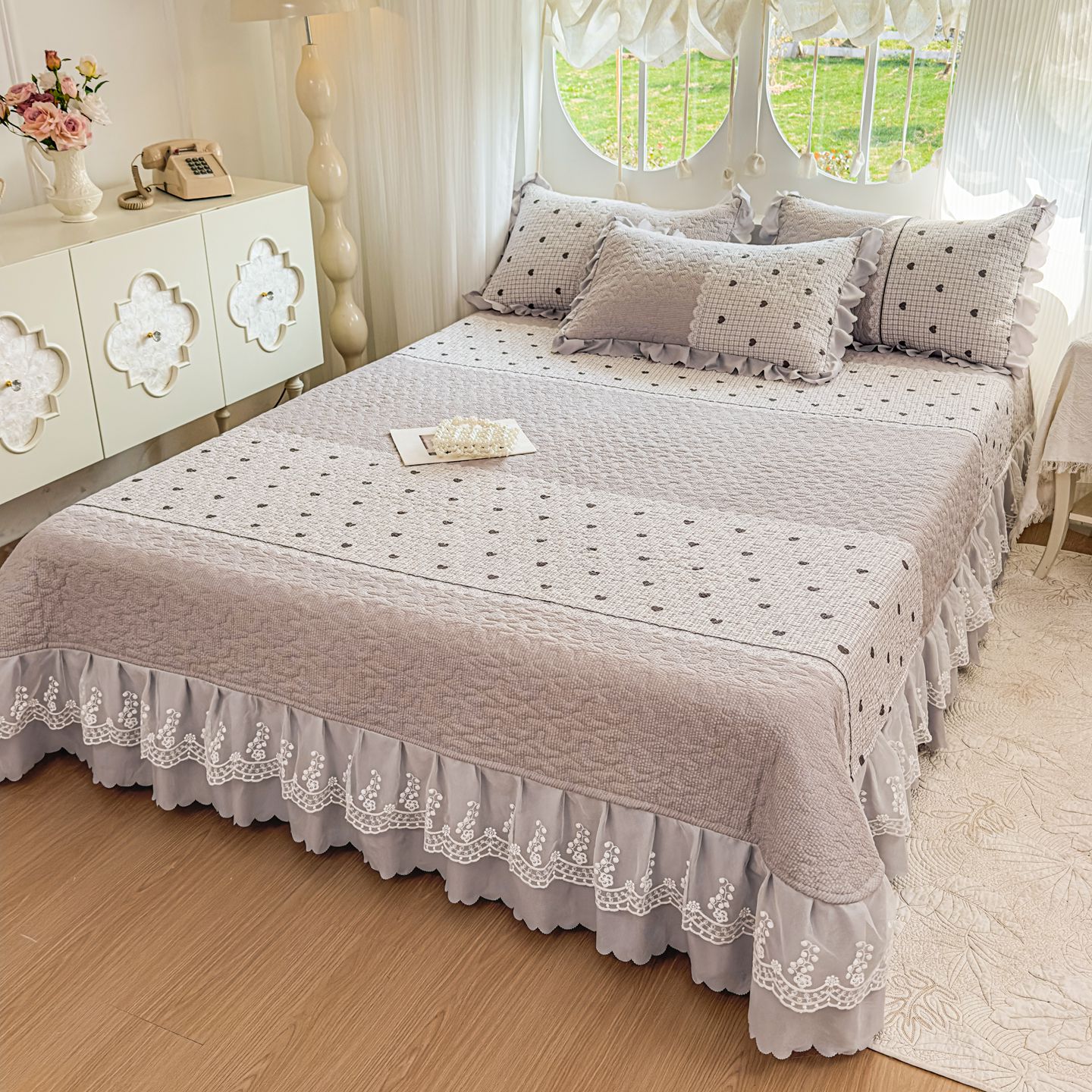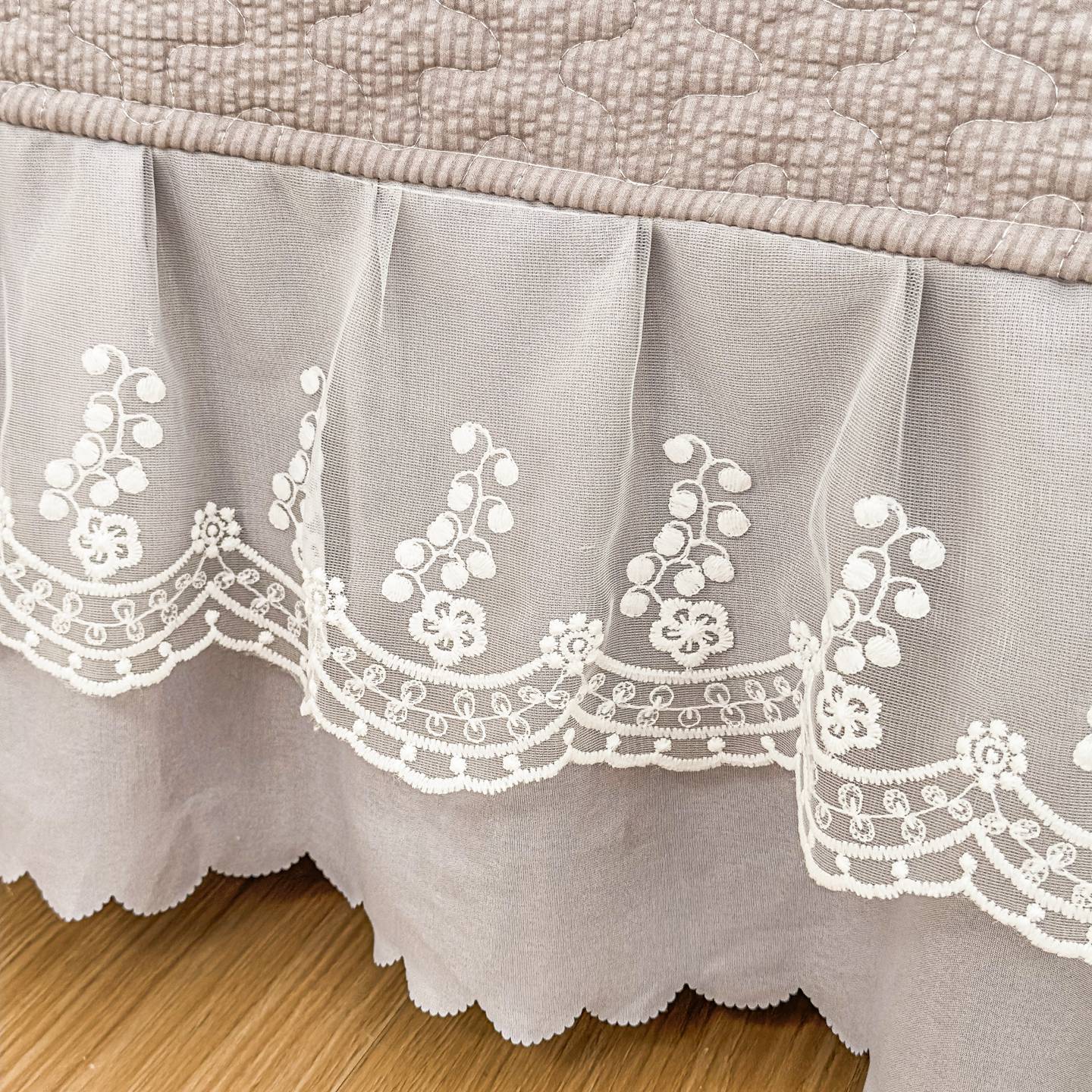 雅眠居 2026直播爆款泡芙棉双层蕾丝花边床盖四件套 甜心-灰