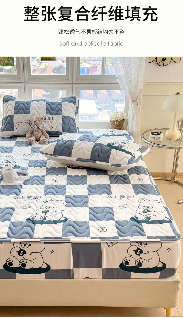 (总)希廷顿 2026新款印花夹棉防水床垫学生款,小恐龙,梦幻森林,小煤球,太空人,luck熊,萌宠狗,马上暴富,草莓熊,星星犬,熊本熊,熊猫攀竹,云之恋