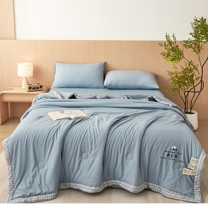 商品名称:鸣创 2026新款棉花夏被无印风100%新疆棉花夏凉被手包边空调被 新疆棉-蓝色