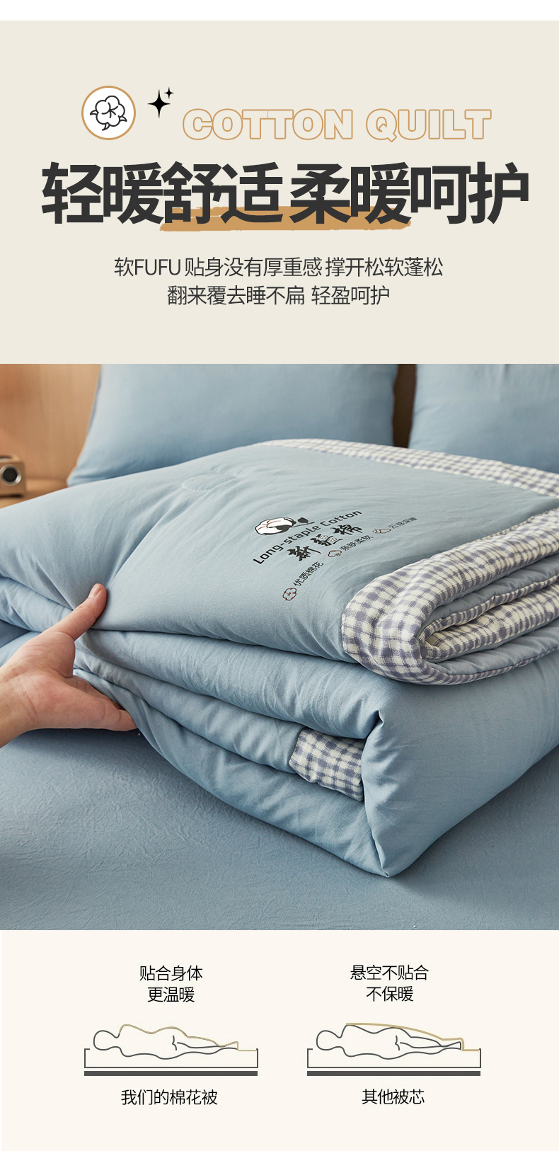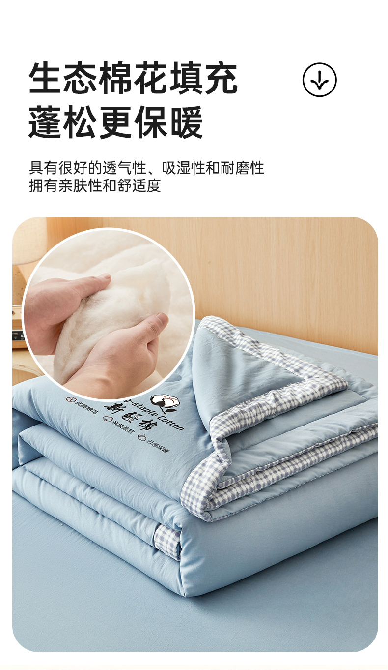 鸣创2025新款100%新疆棉花被无印风长绒棉冬被被子立体被芯春秋被直播(提供质检报告买家秀),新疆棉-米白,新疆棉-粉色,新疆棉-灰色,新疆棉-蓝色