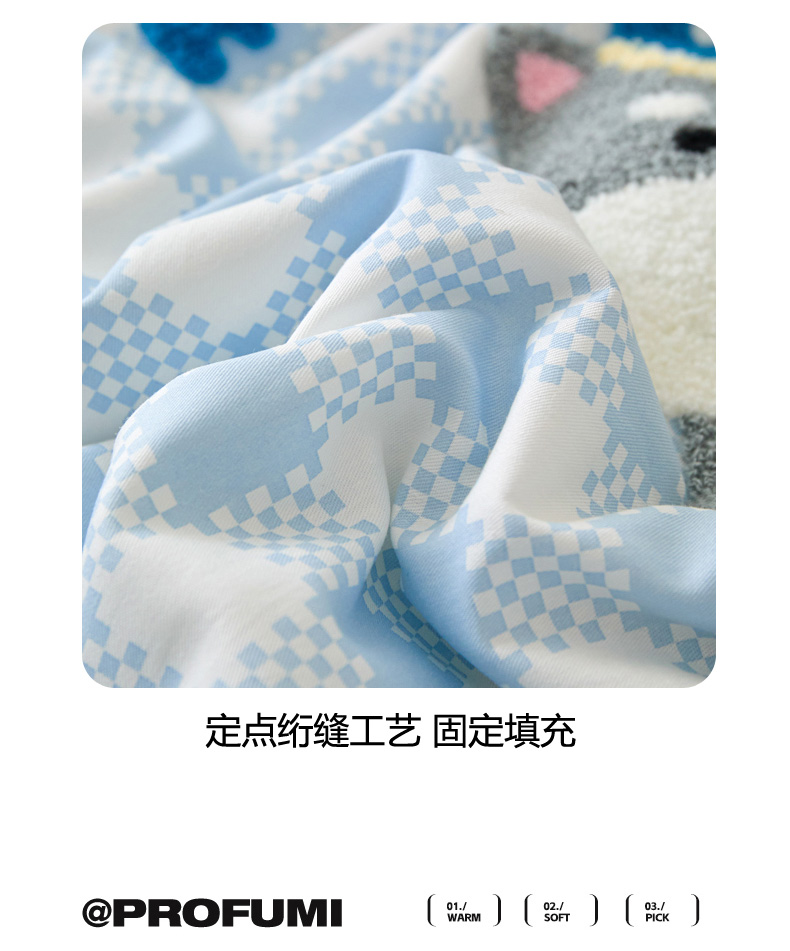 商品名称:倾慕家纺 2026新款全棉卡通毛巾绣系列夏被 夏被格子小狗