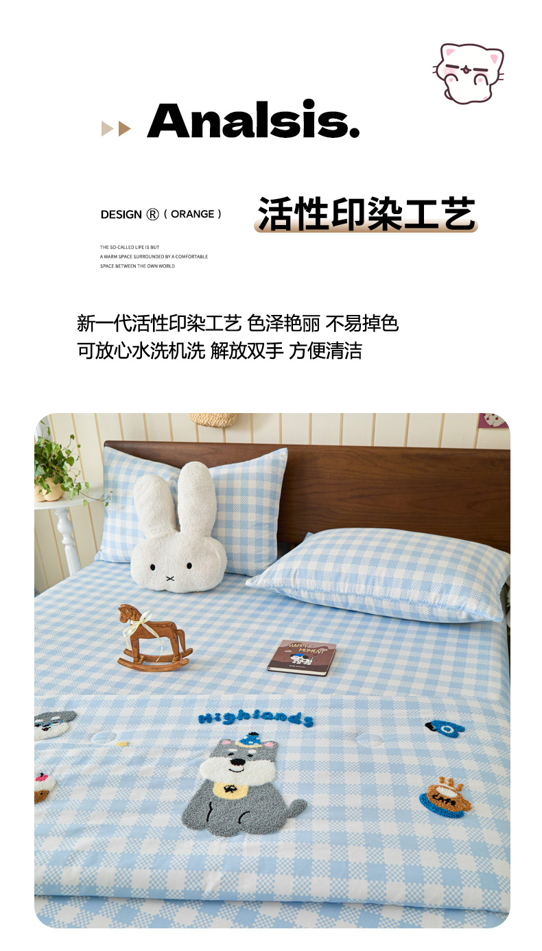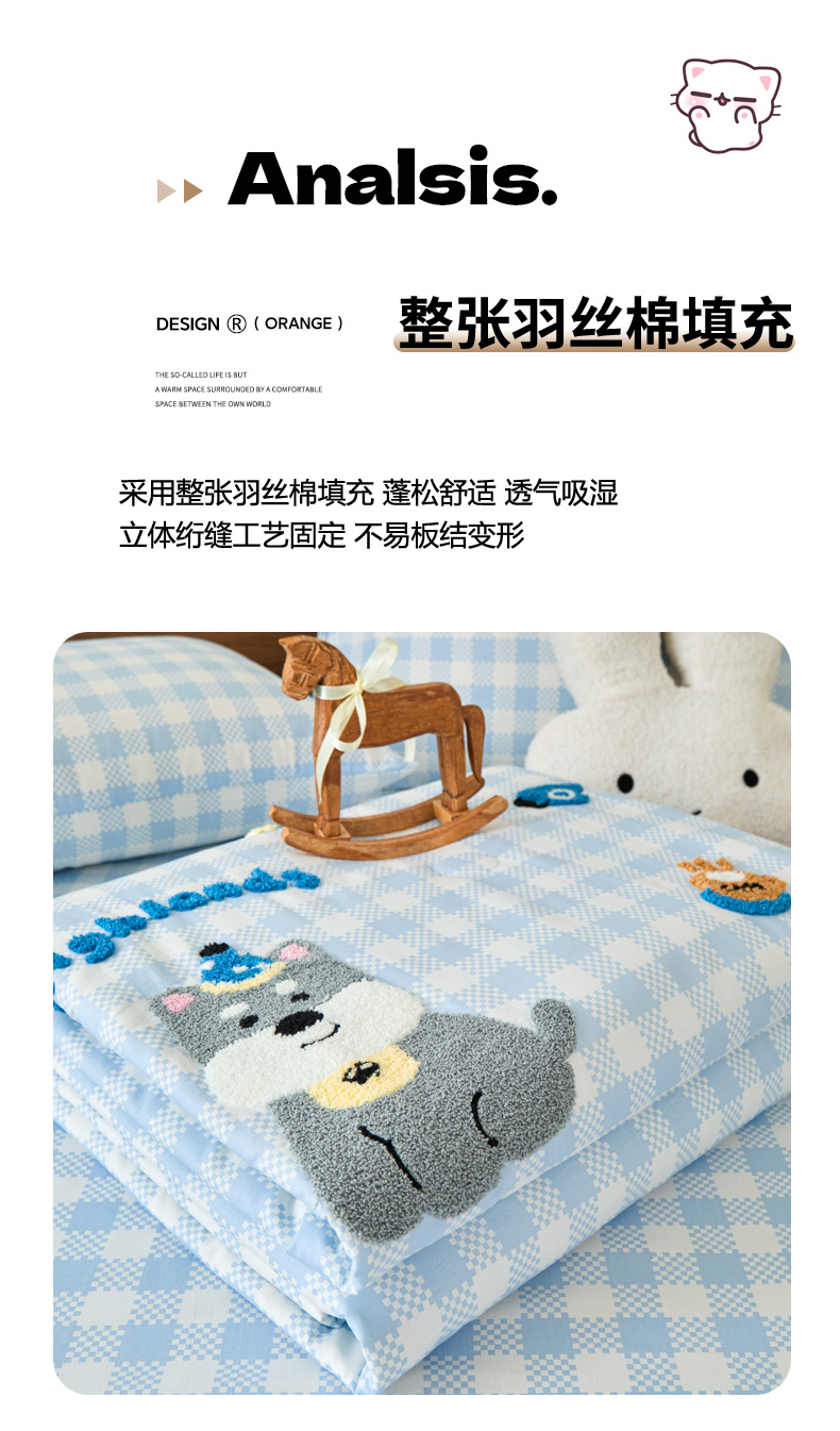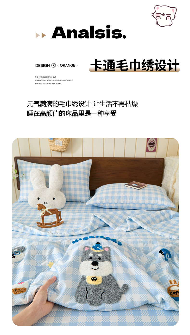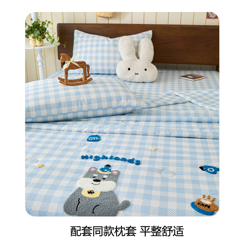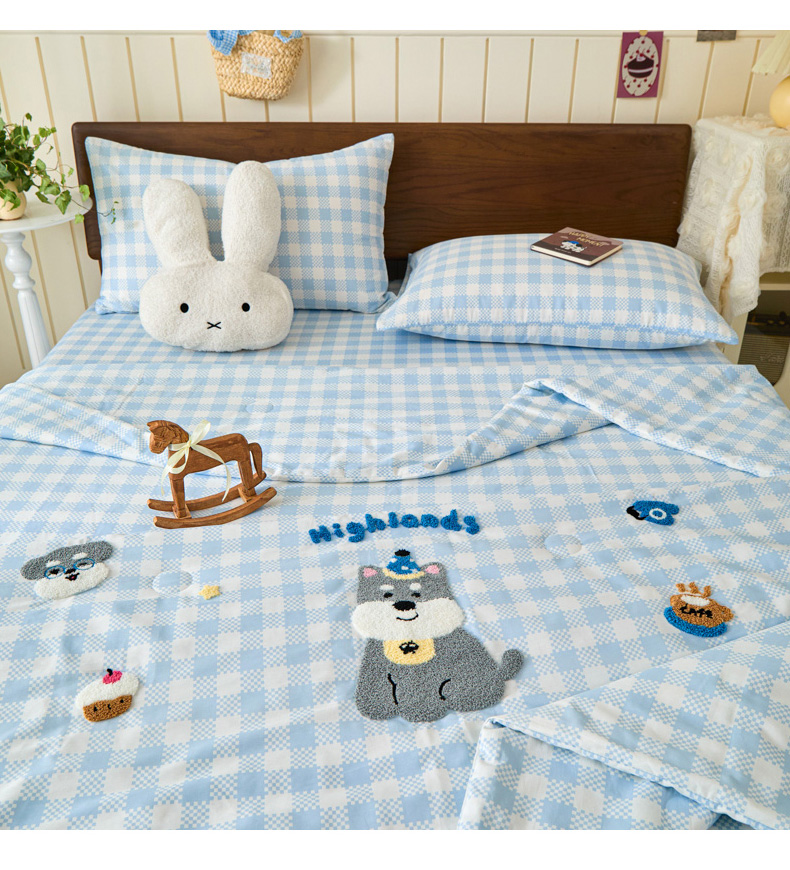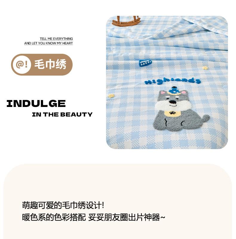 倾慕家纺 2026新款全棉卡通毛巾绣系列夏被 夏被格子小狗
