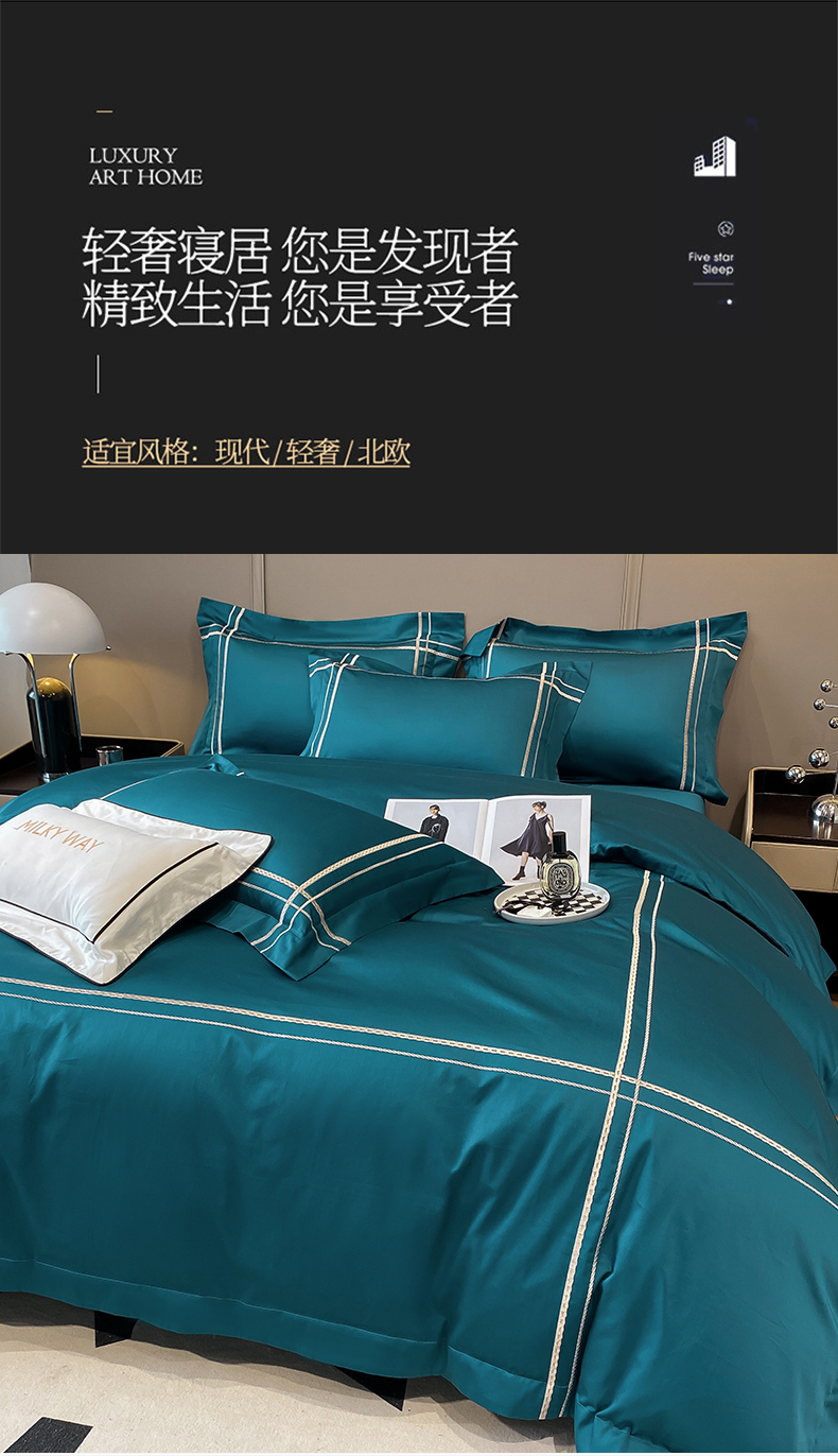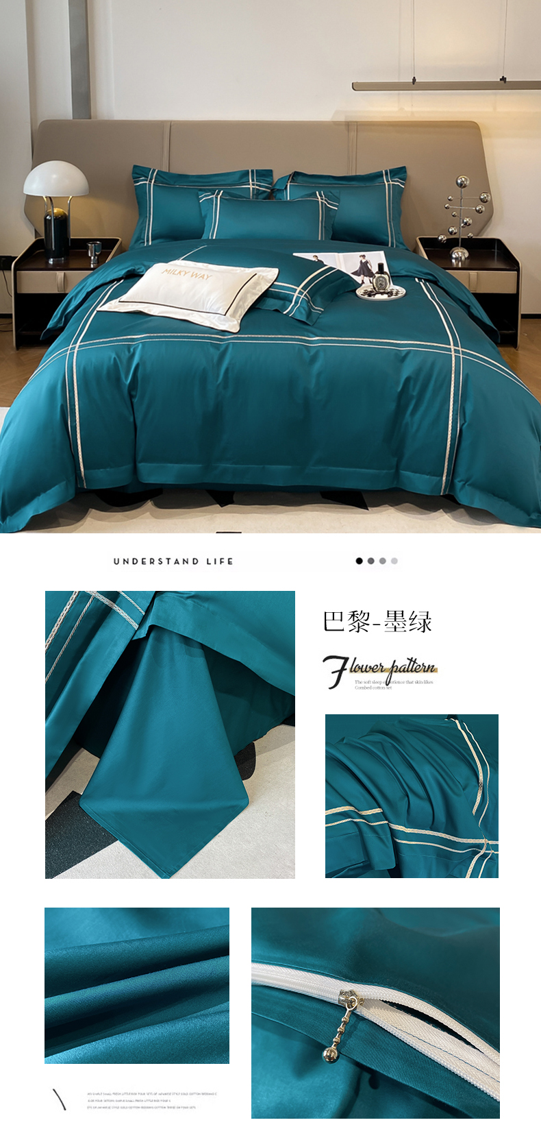 当前位置: 91家纺网 > 商品网购 > 床品套件 > 四件套 > 长绒棉四件套 > 家居1号家纺 2026新款50双股100支长绒棉四件套-巴黎 巴黎-墨绿