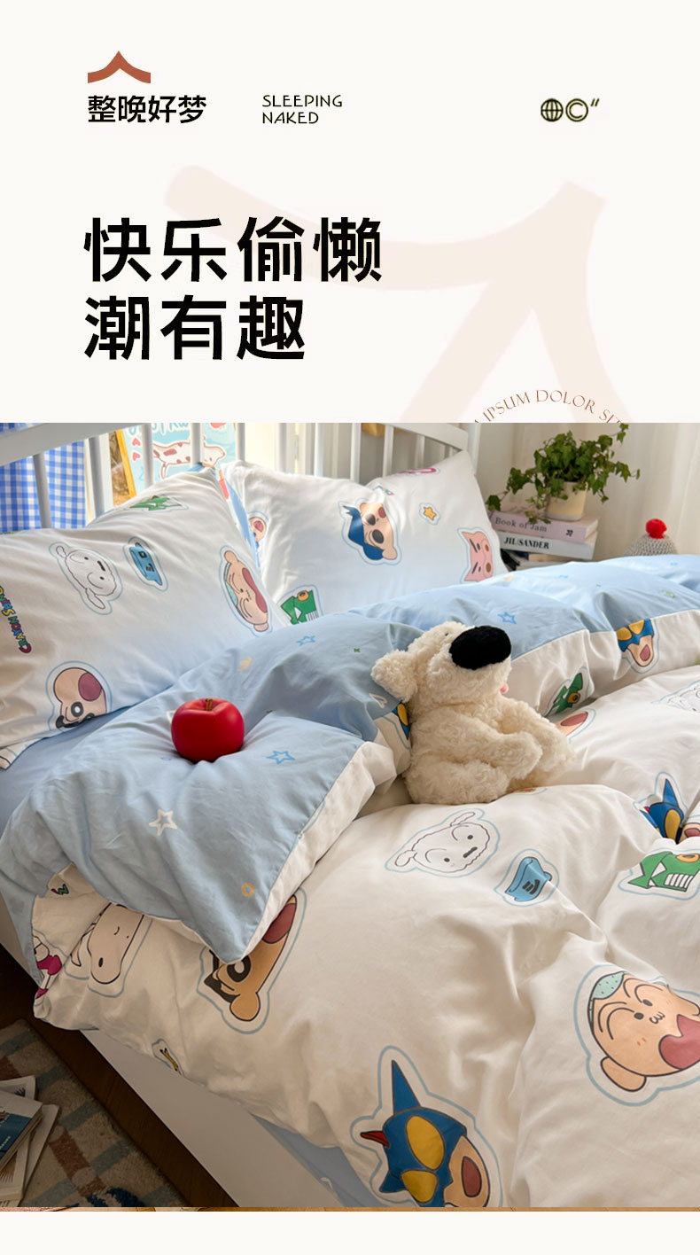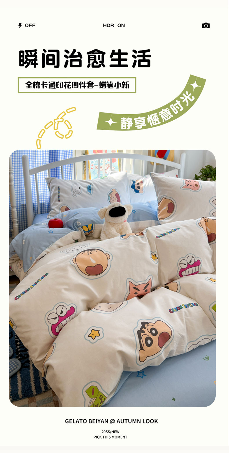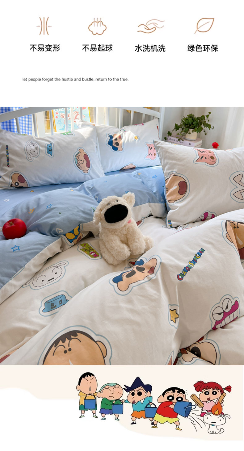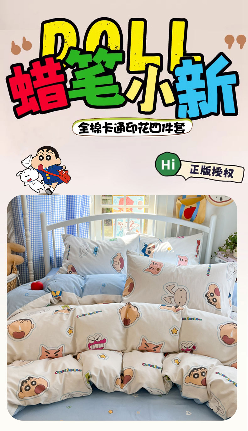 当前位置: 91家纺网 > 商品网购 > 床品套件 > 四件套 > 全棉普通四件套 > 桃子家居 2026春夏新款蜡笔小新授权全棉纯棉印花卡通系列四件套 棉印花-趣味小新