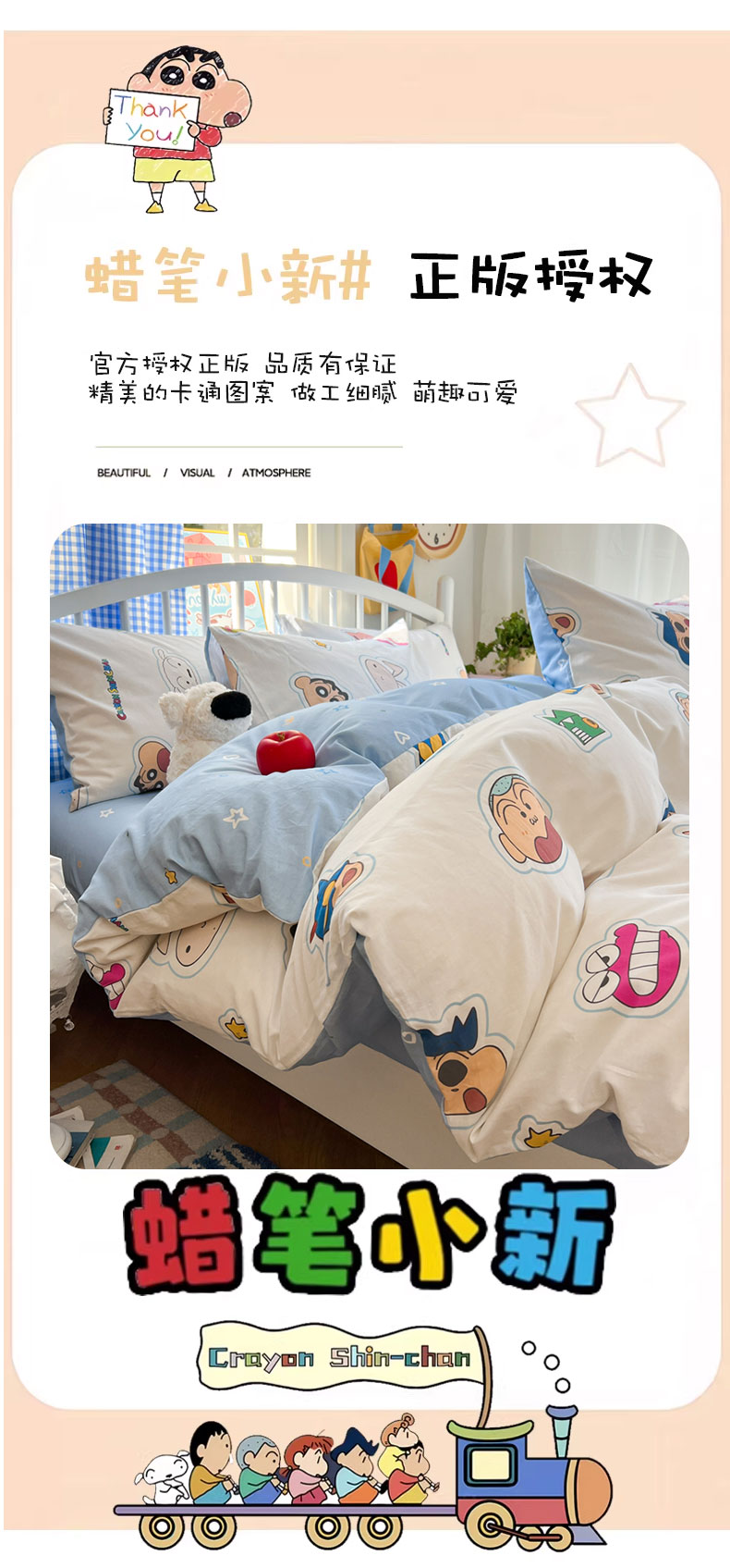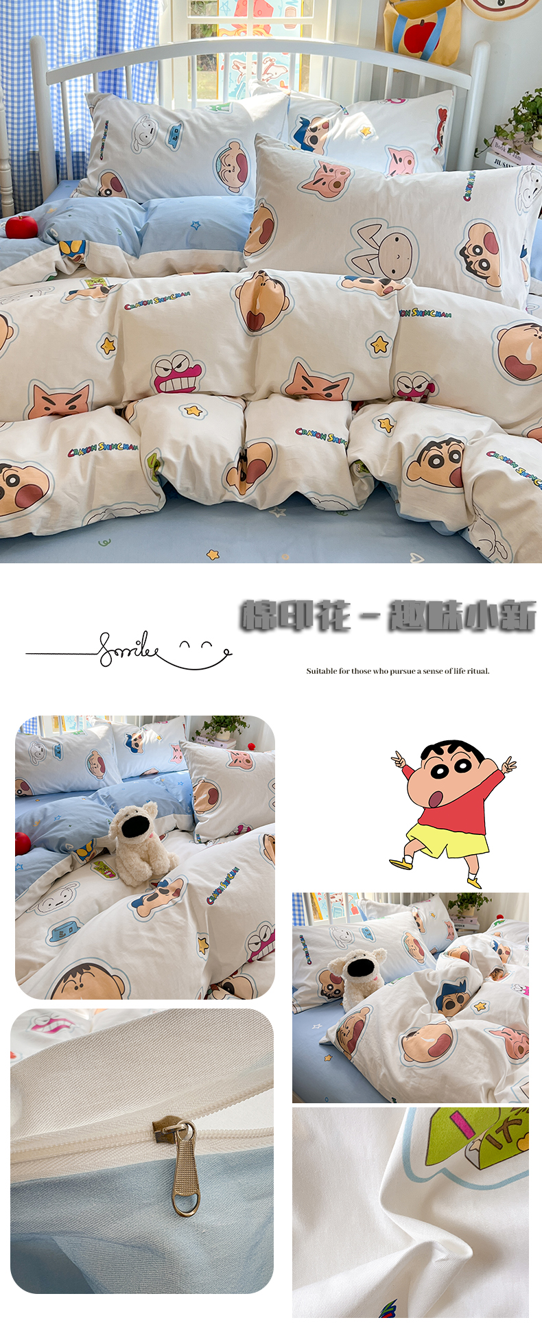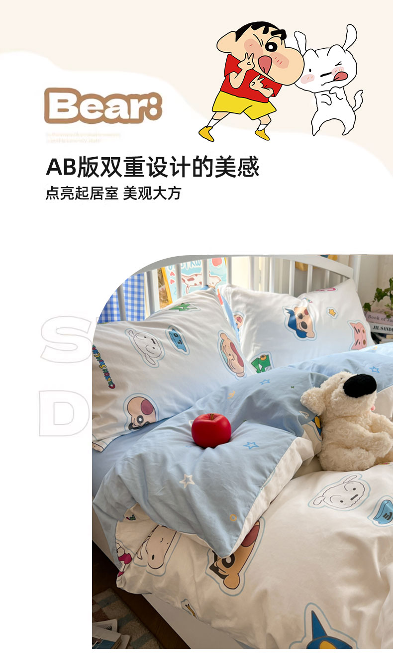 当前位置: 91家纺网 > 商品网购 > 床品套件 > 四件套 > 全棉普通四件套 > 桃子家居 2026春夏新款蜡笔小新授权全棉纯棉印花卡通系列四件套 棉印花-趣味小新
