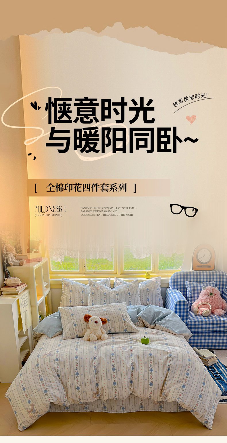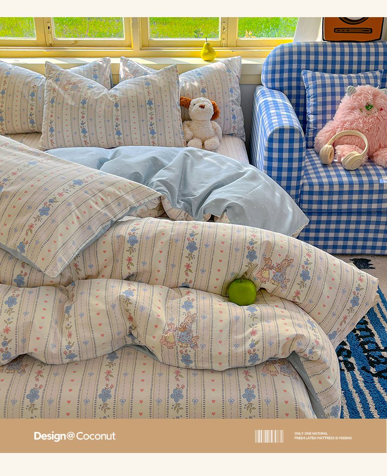 当前位置: 91家纺网 > 商品网购 > 床品套件 > 四件套 > 全棉普通四件套 > 简约家纺 2026新款全棉斜纹12868四件套系列 蓝茵小兔