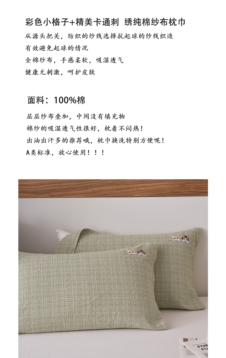 (总)百寐 2026百分百全棉A类色织枕巾52*75条纹格子美拉德色系纯棉吸汗枕巾风格二,色织 -米格,色织-红格,色织-蓝条,色织-绿格,色织-绿条,色织-浅绿格,色织-深咖格,色织-双拼绿格,色织-双拼米格,组合图(仅供展示不可下单)