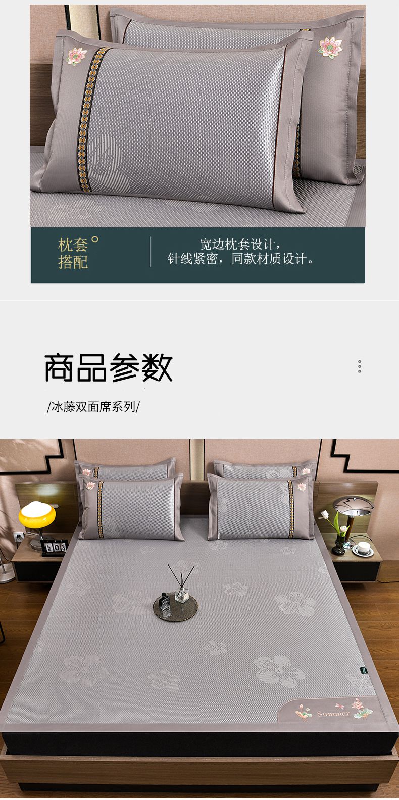 娜朵家纺 2026新款荷塘月色冰藤双面席-床席款 荷塘月色提花绿