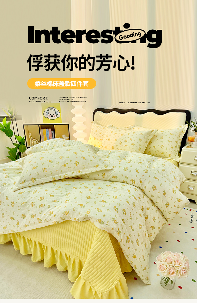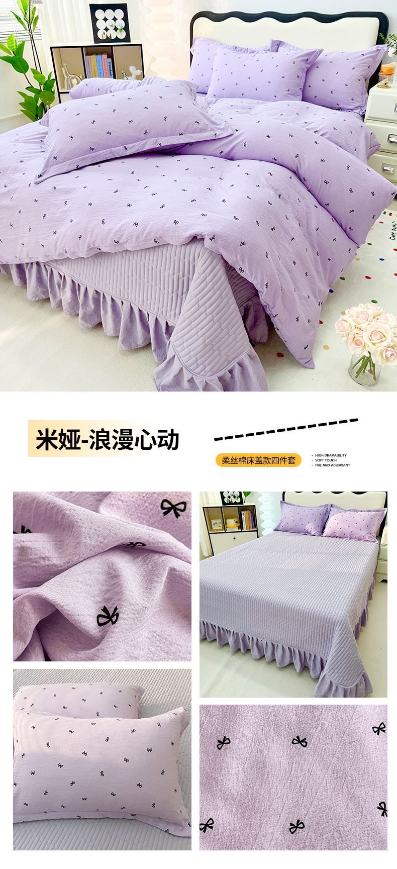 当前位置: 91家纺网 > 商品网购 > 床品套件 > 四件套 > 其它四件套 > 九诺家纺 2026新款丝柔棉皱皱纱花边床盖四件套 米娅-欧若拉