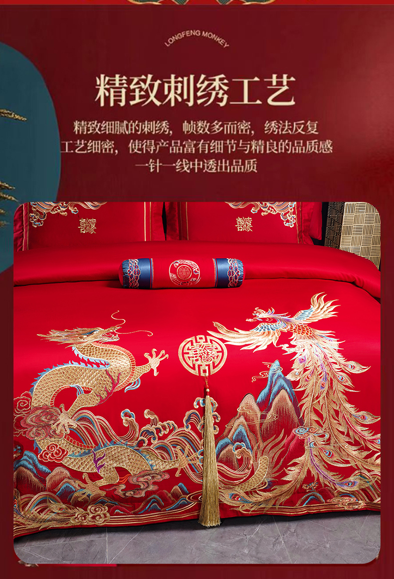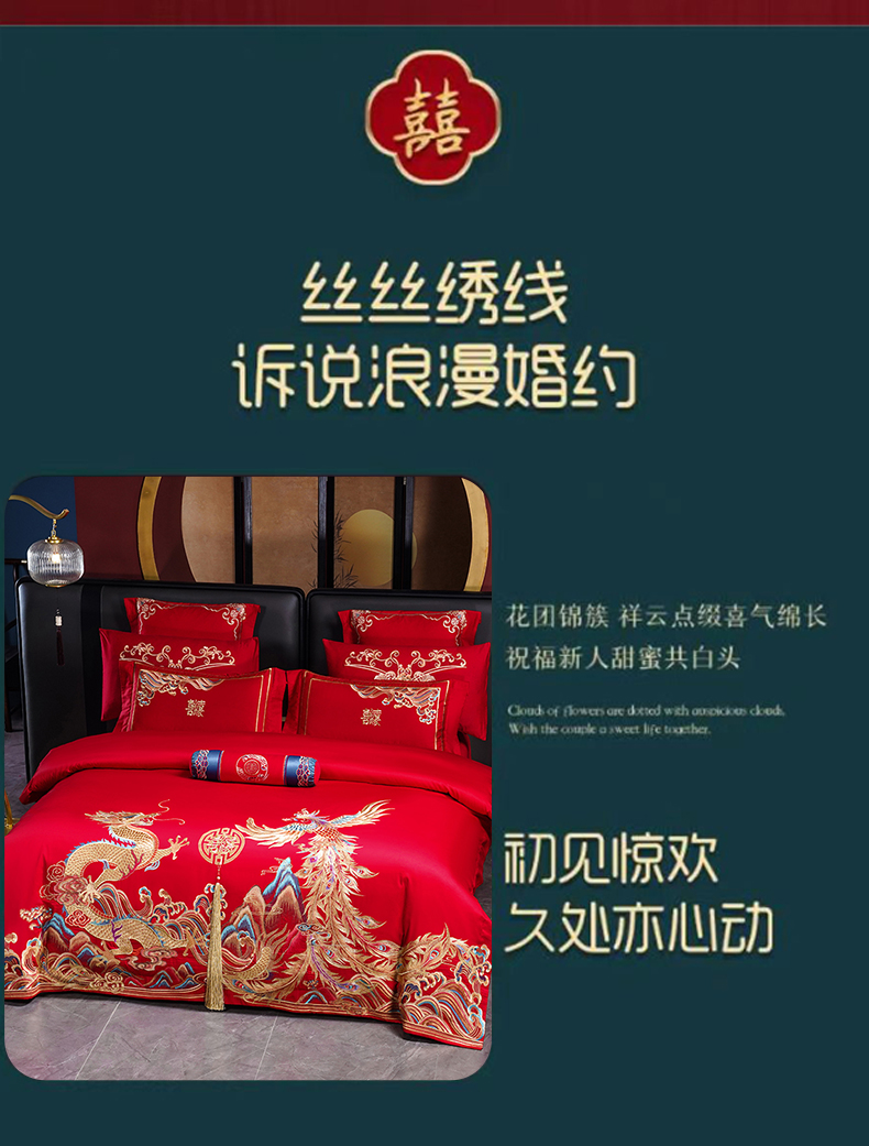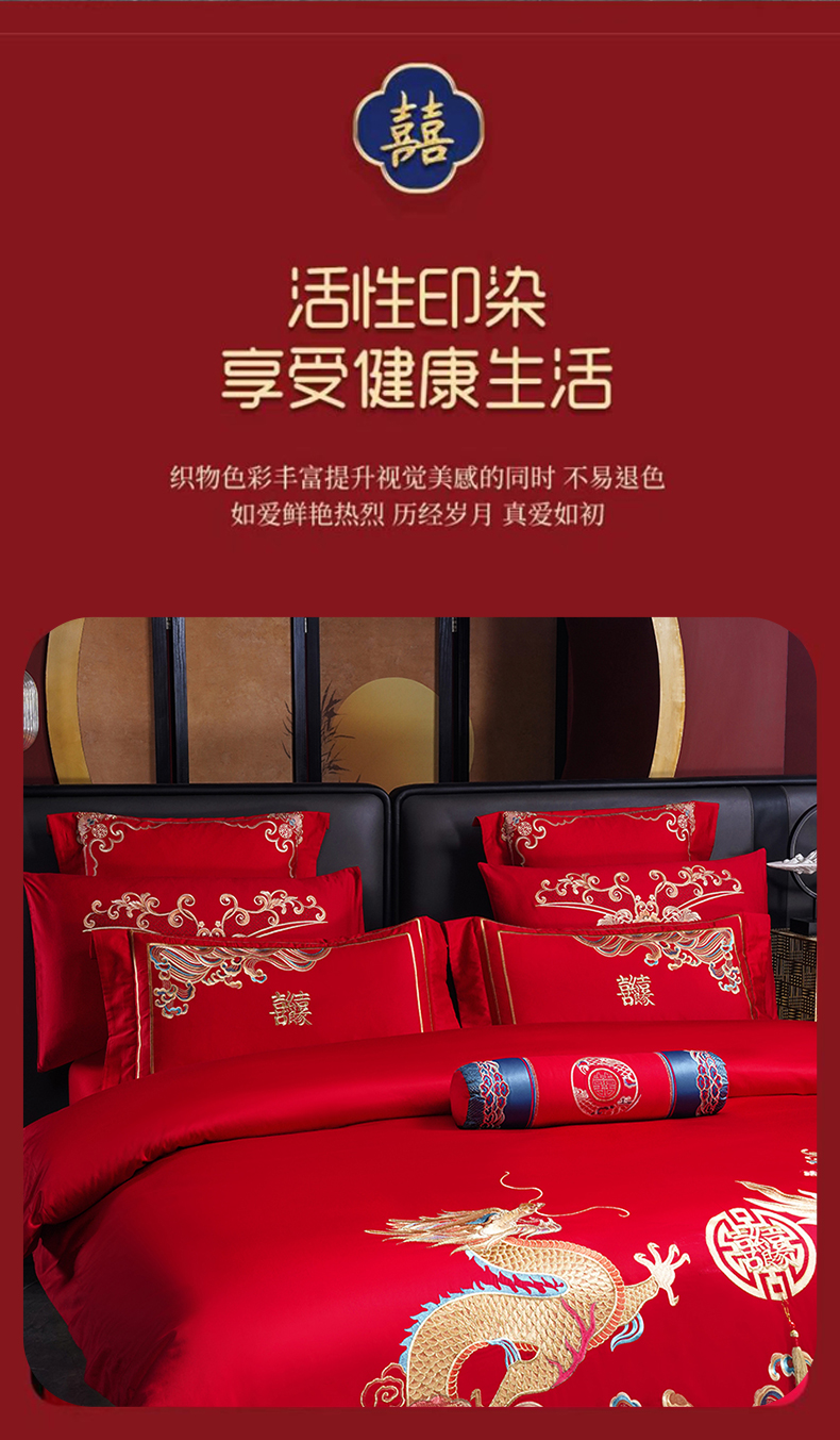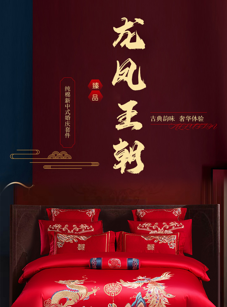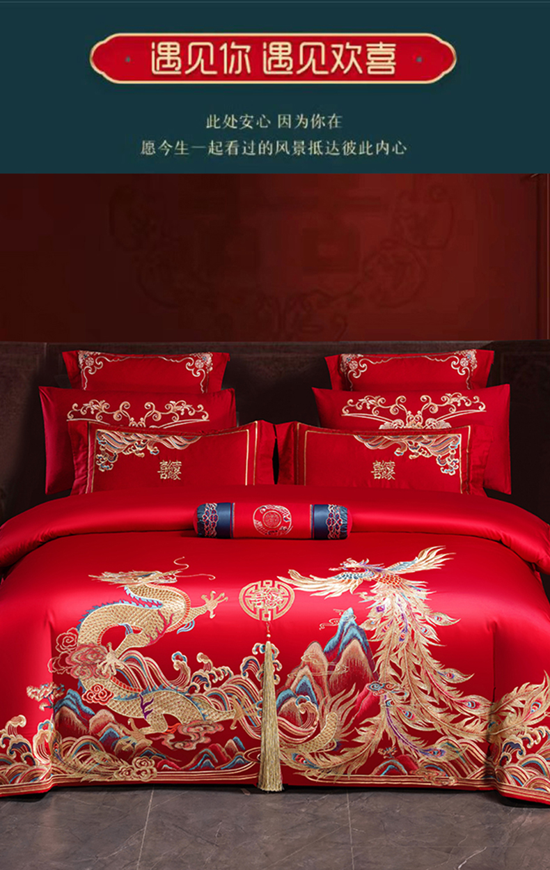 当前位置: 91家纺网 > 商品网购 > 床品套件 > 四件套 > 婚庆四件套 > 博之洋婚庆 2026新款全棉长绒棉刺绣婚庆四件套多件套 龙凤王朝