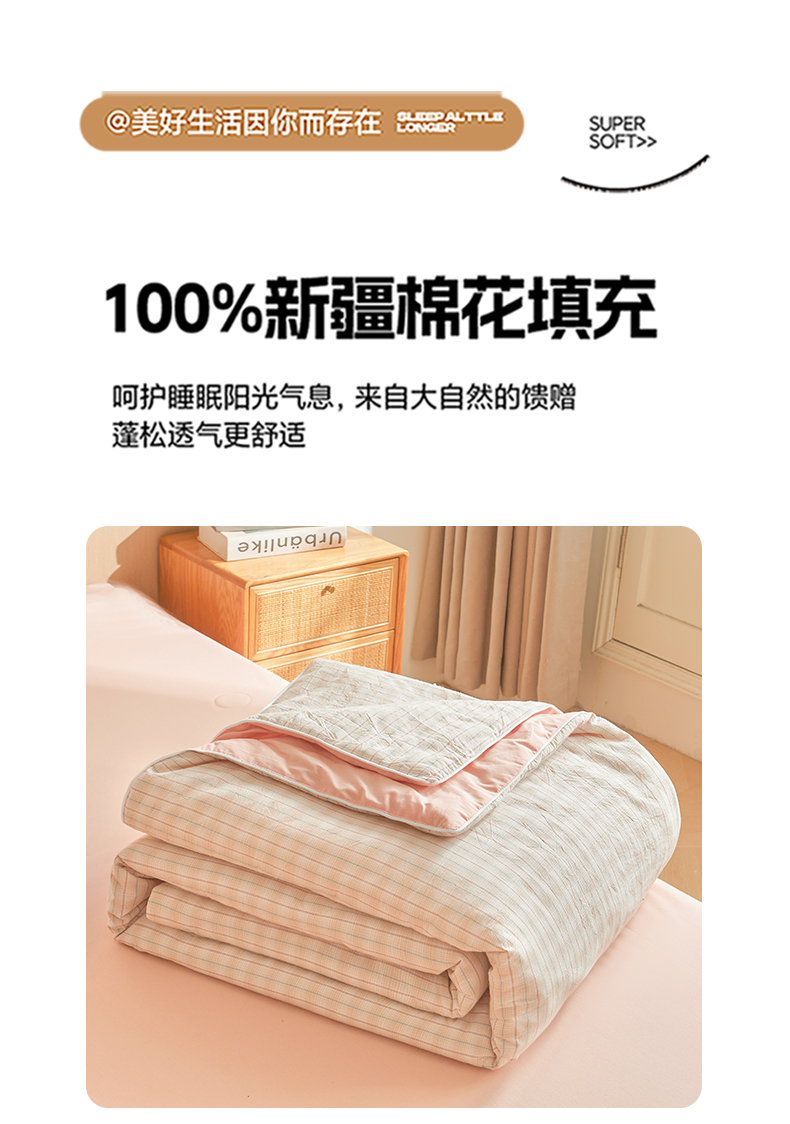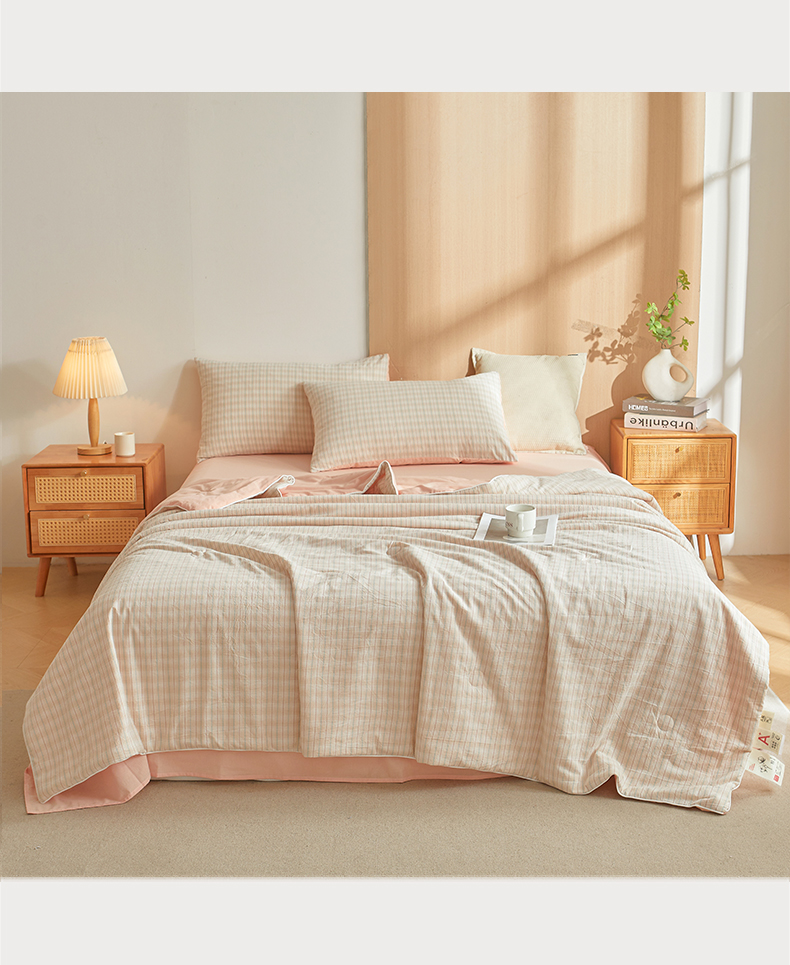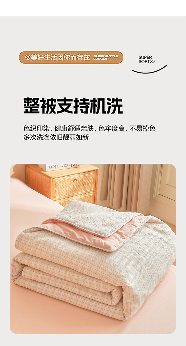 (总)金喜 2026新款A类全棉色织水洗棉夏被夏凉被,低调米,朵拉咖,琥珀粉,焕花灰,柠檬粉,柠檬兰