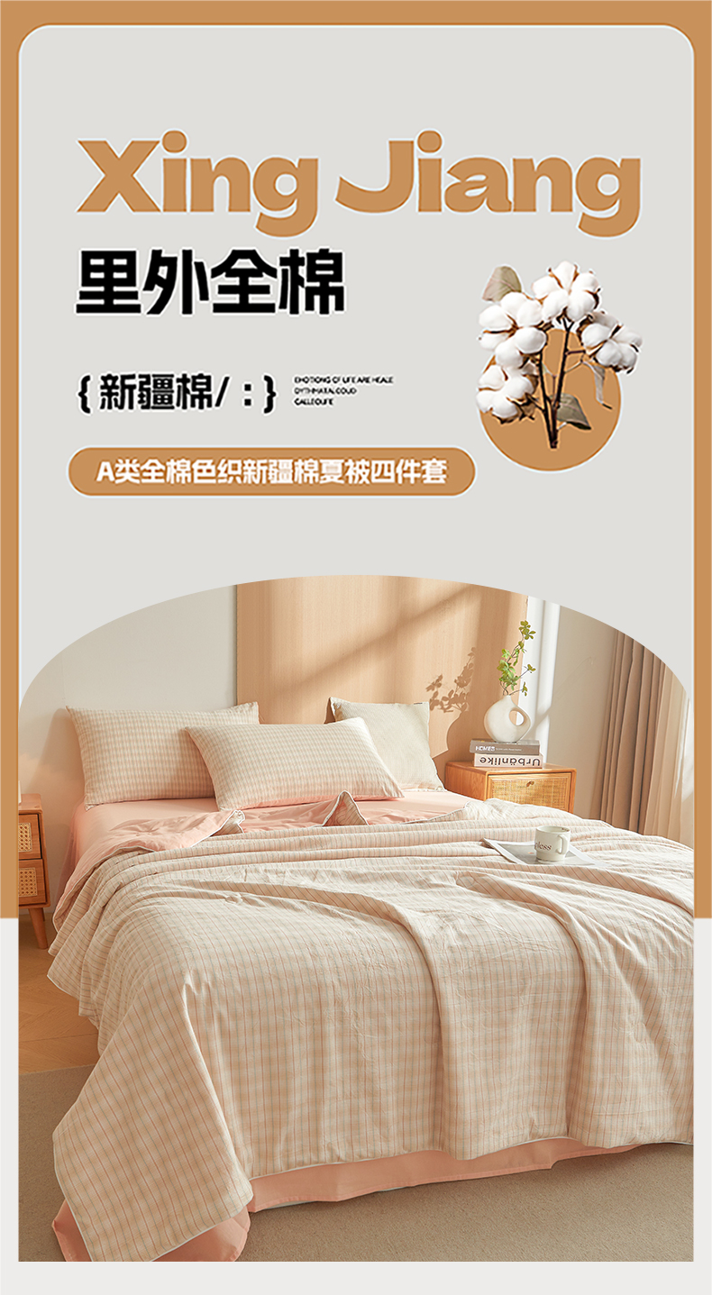 (总)金喜 2026新款A类全棉色织新疆棉夏被四件套,低调米,朵拉咖,琥珀粉,焕花灰,柠檬粉,柠檬兰