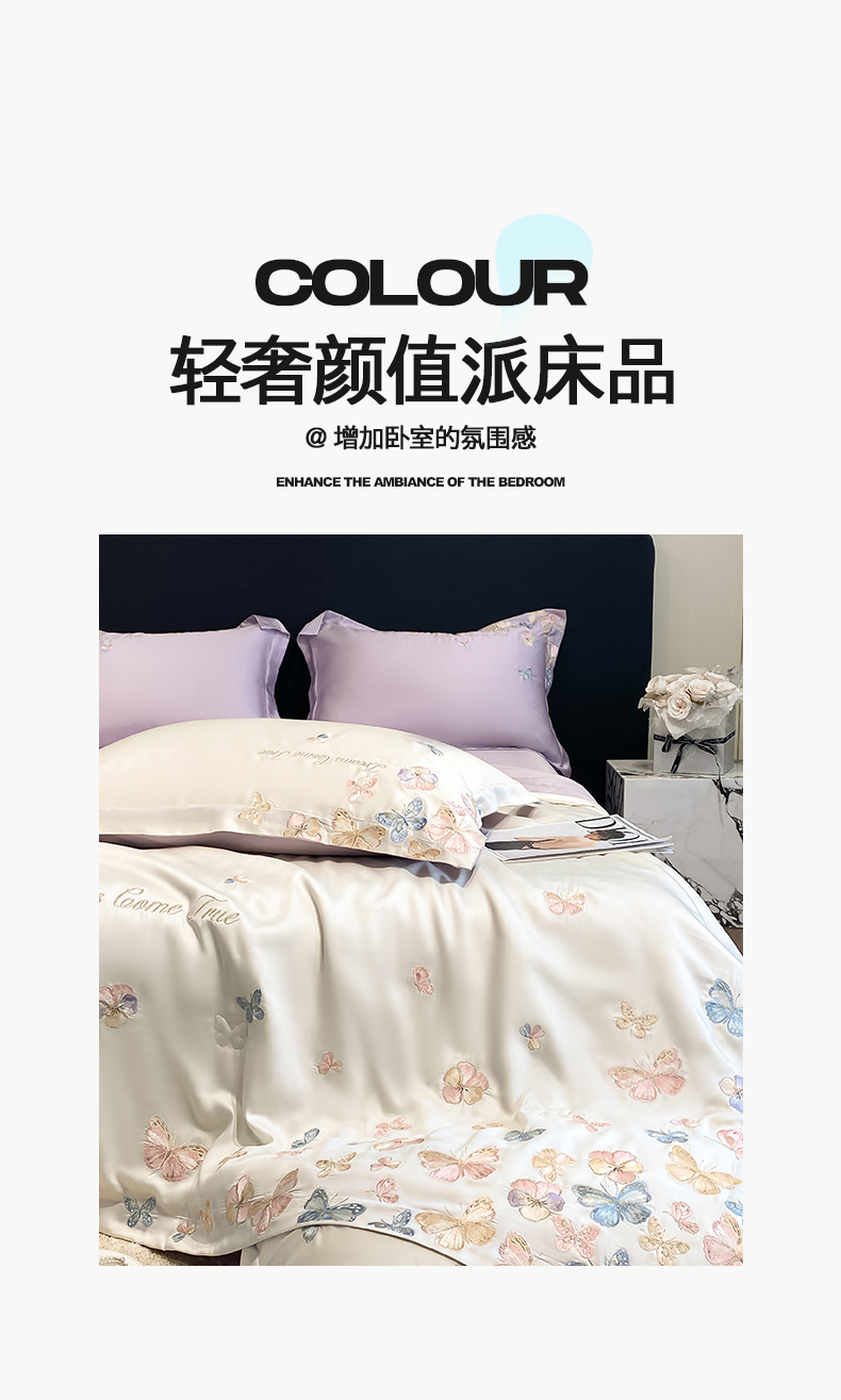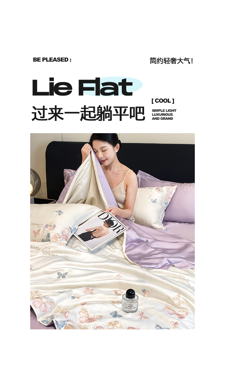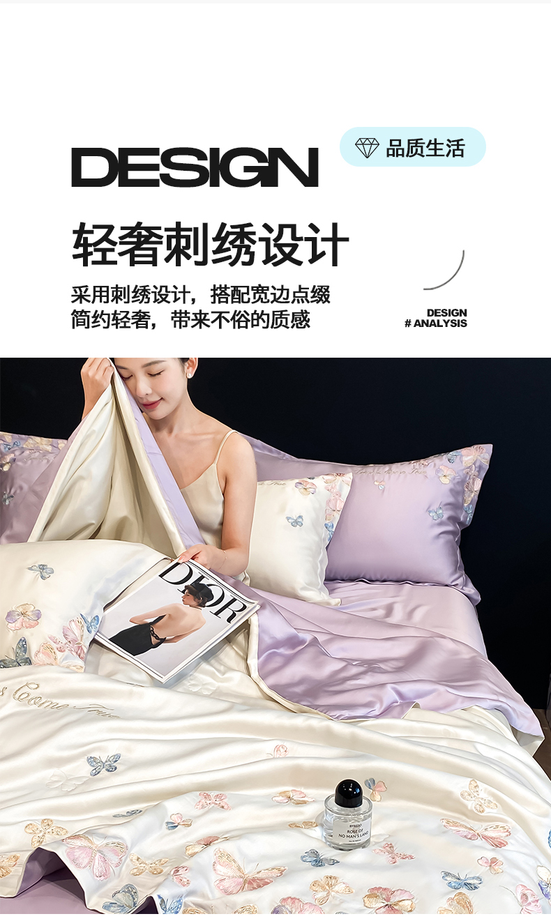 当前位置: 91家纺网 > 商品网购 > 床品套件 > 四件套 > 夏被四件套 > 置顶家纺 2026新款水洗天丝夏被四件套-花不尽 花不尽-白+香芋紫