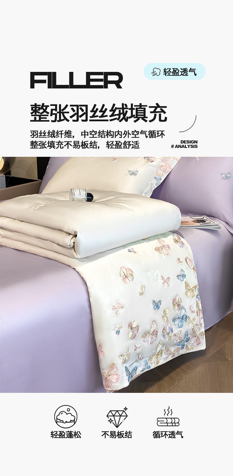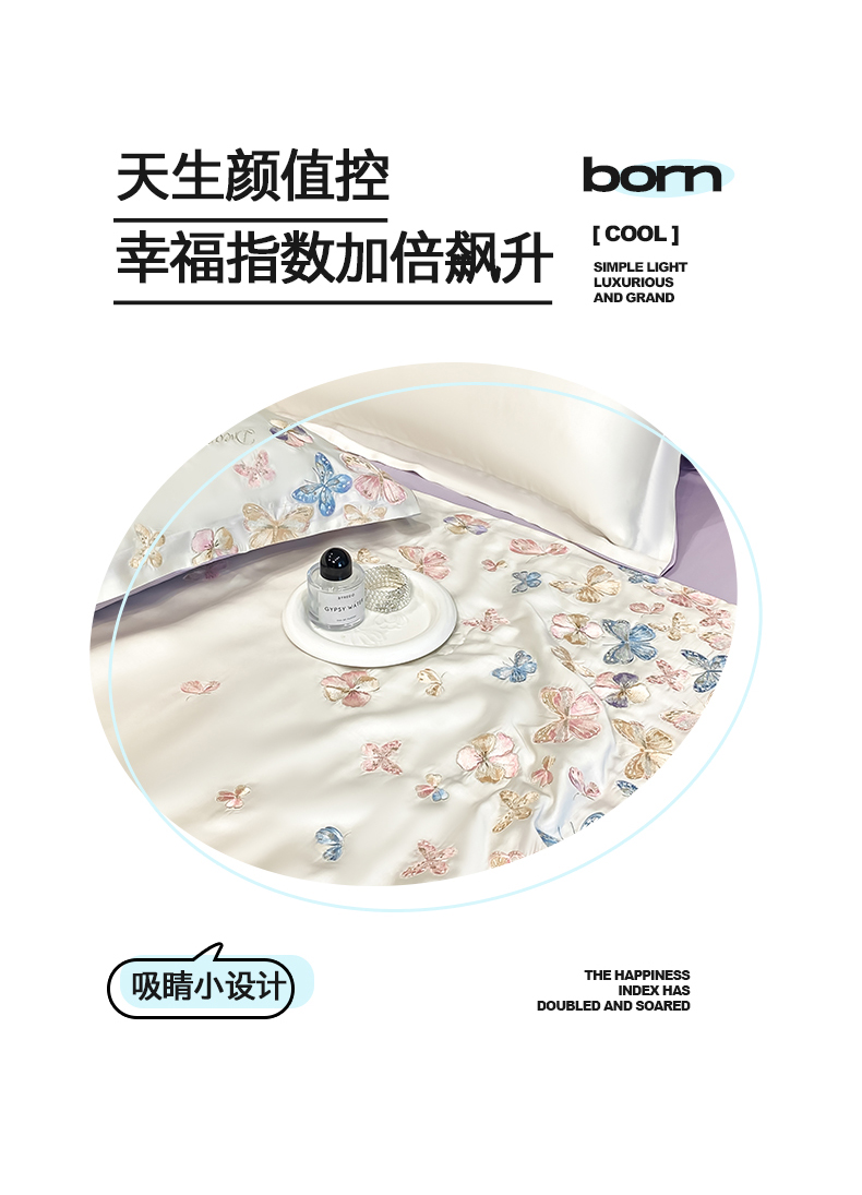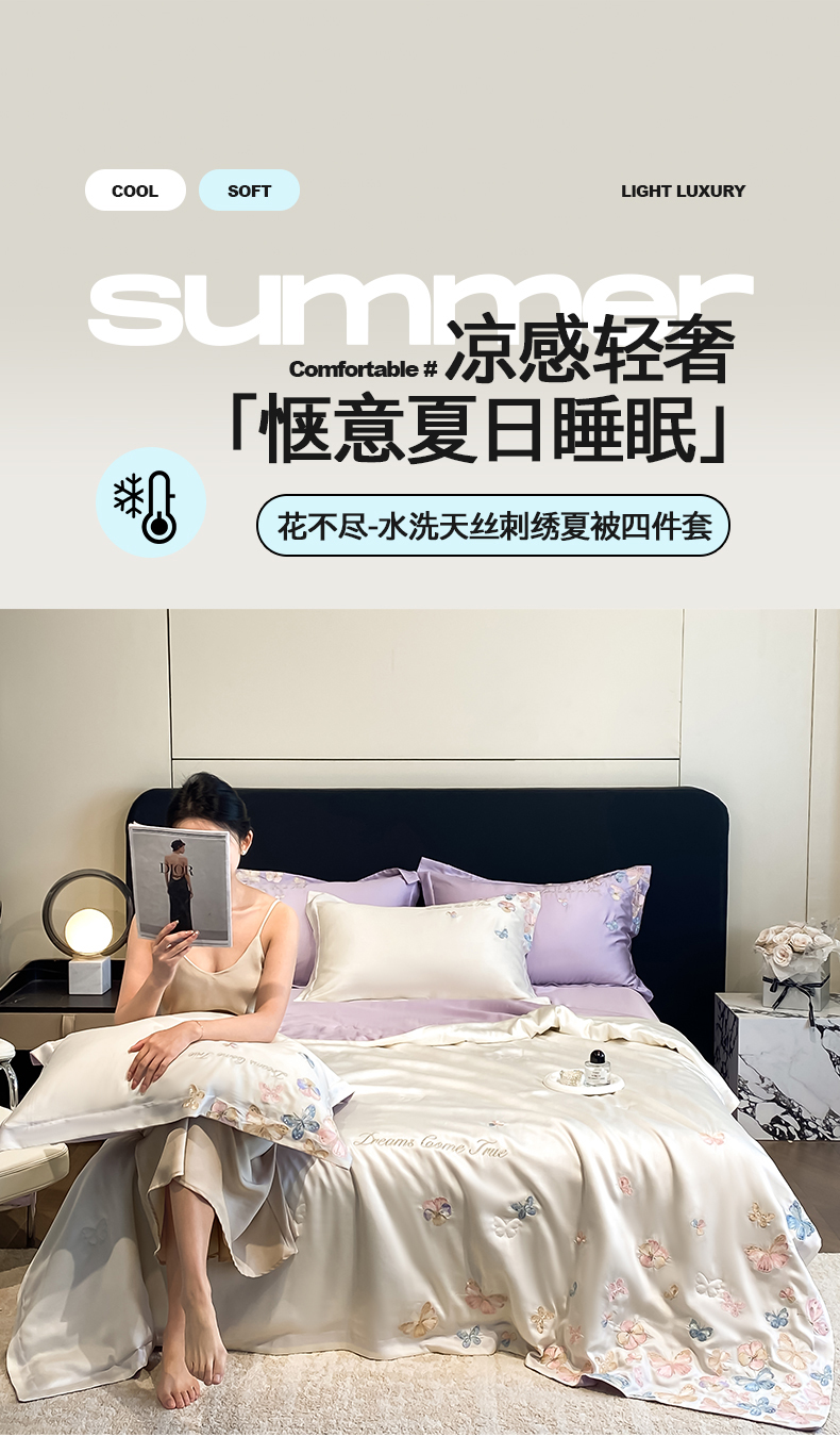 当前位置: 91家纺网 > 商品网购 > 床品套件 > 四件套 > 夏被四件套 > 置顶家纺 2026新款水洗天丝夏被四件套-花不尽 花不尽-白+香芋紫