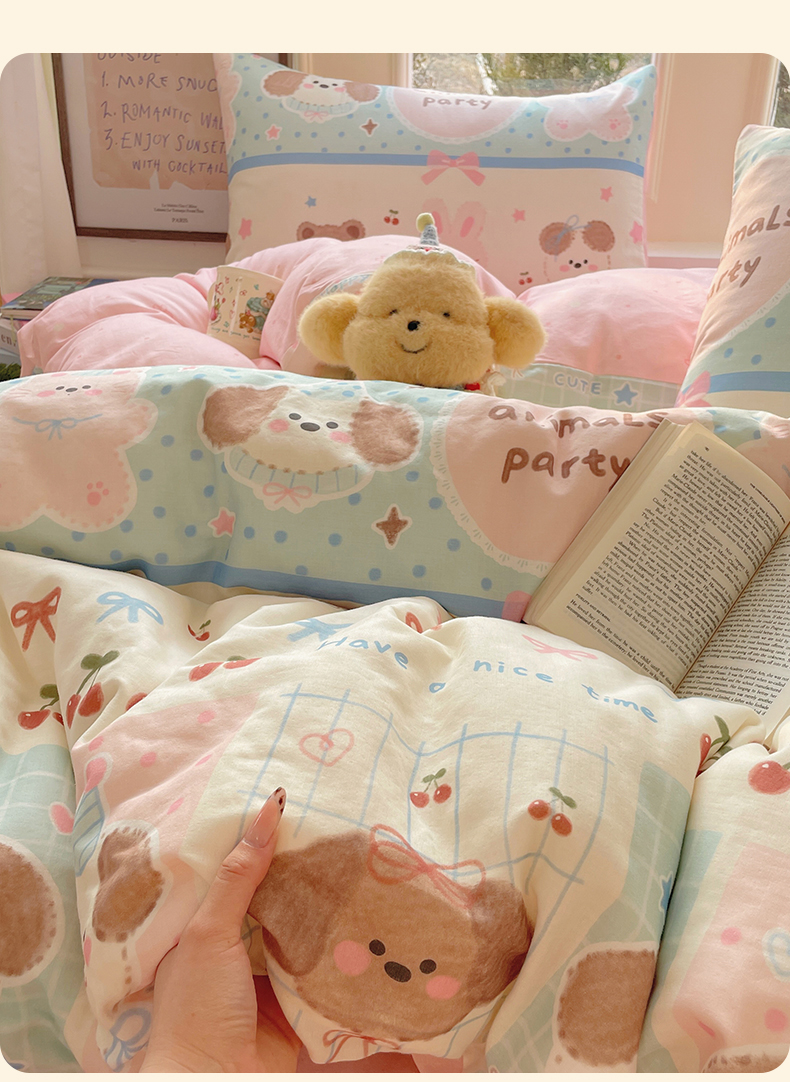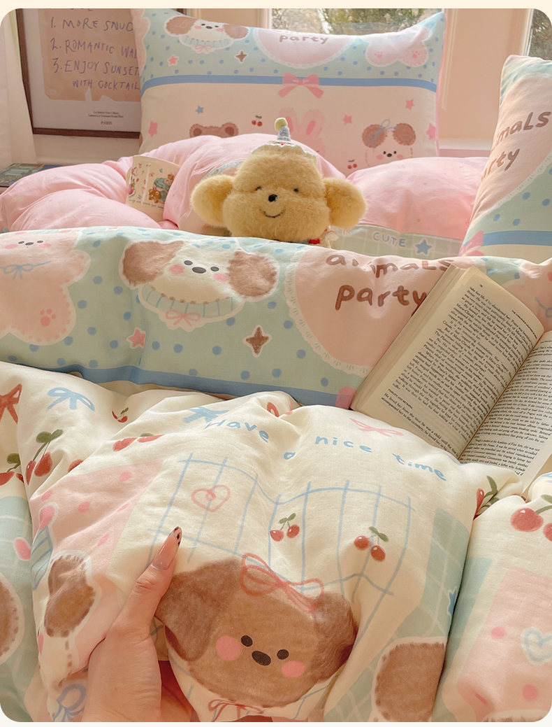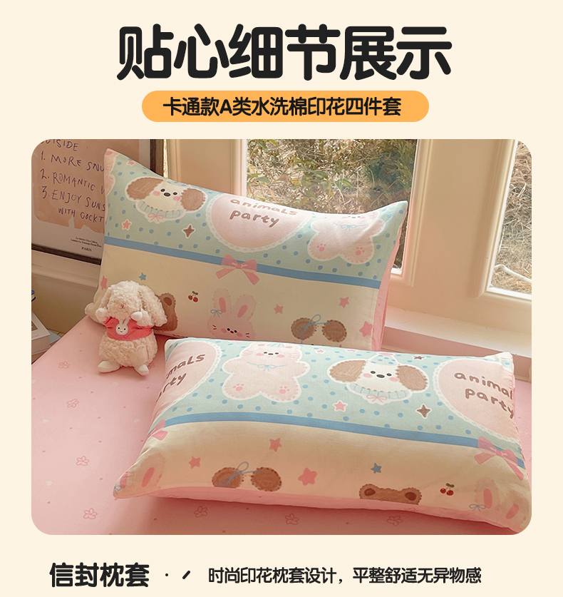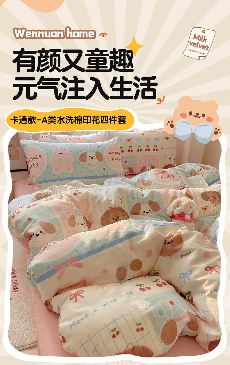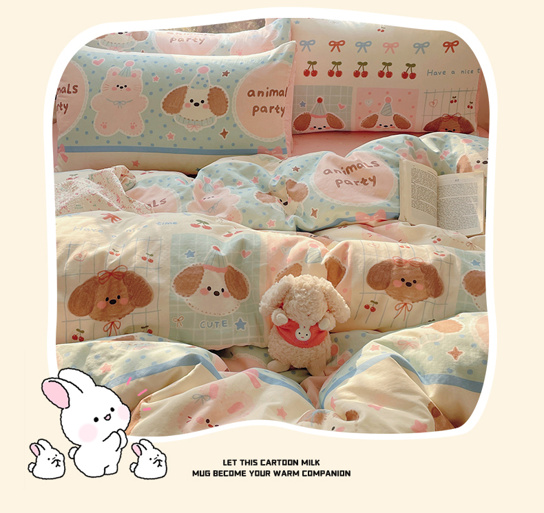 当前位置: 91家纺网 > 商品网购 > 床品套件 > 四件套 > 水洗棉四件套 > 盛秋家纺 2026新款卡通款A类水洗棉印花四件套 小狗来信+花朵粉