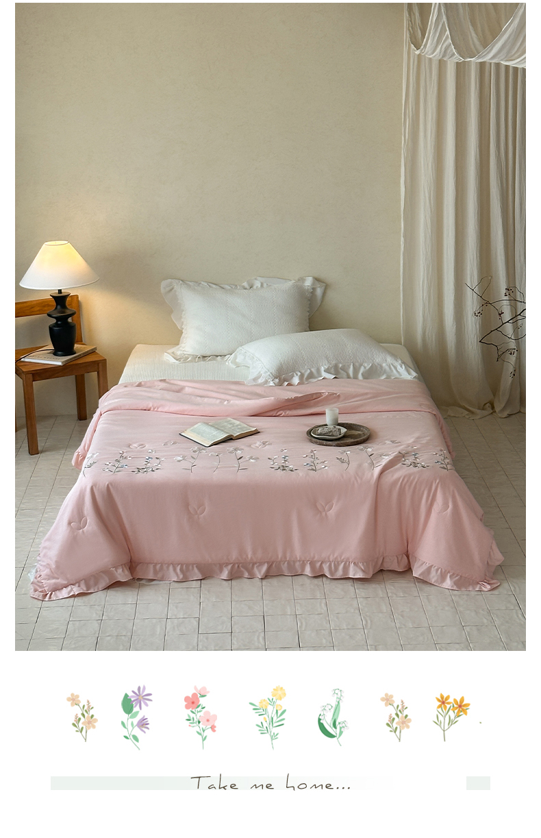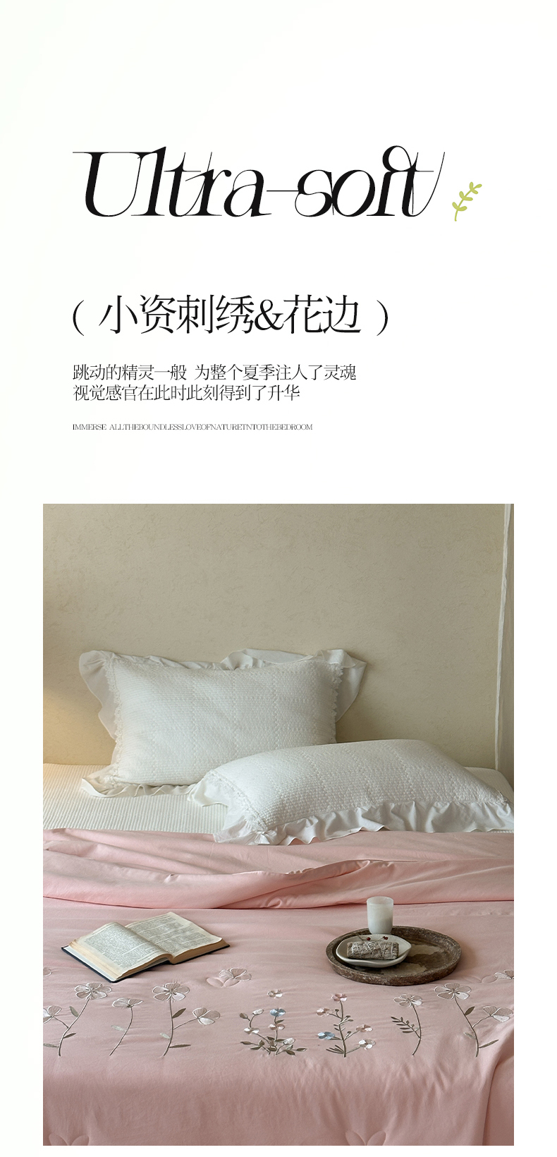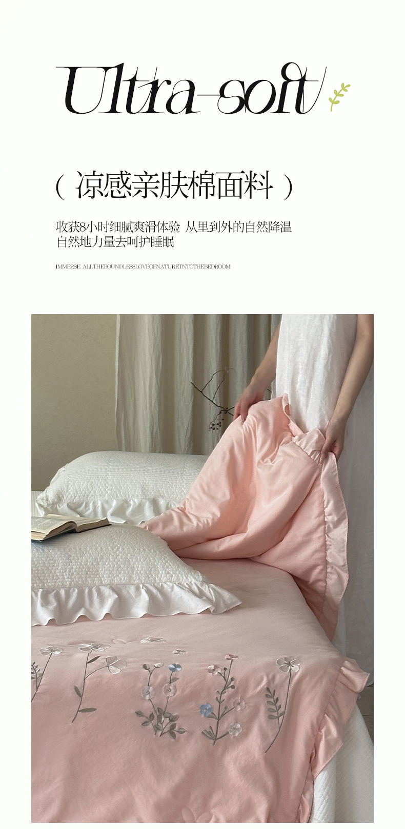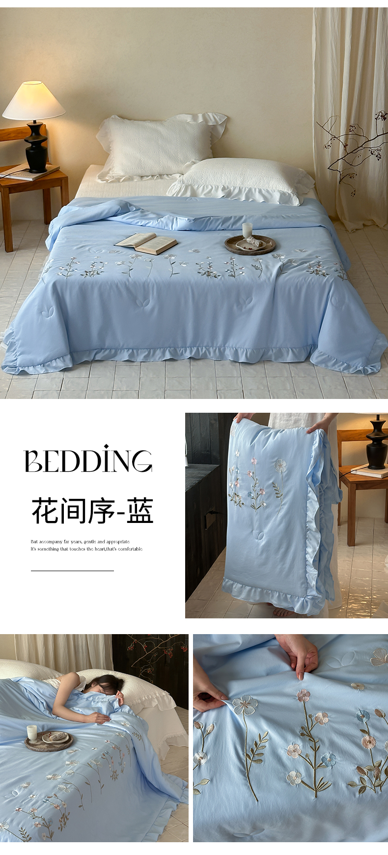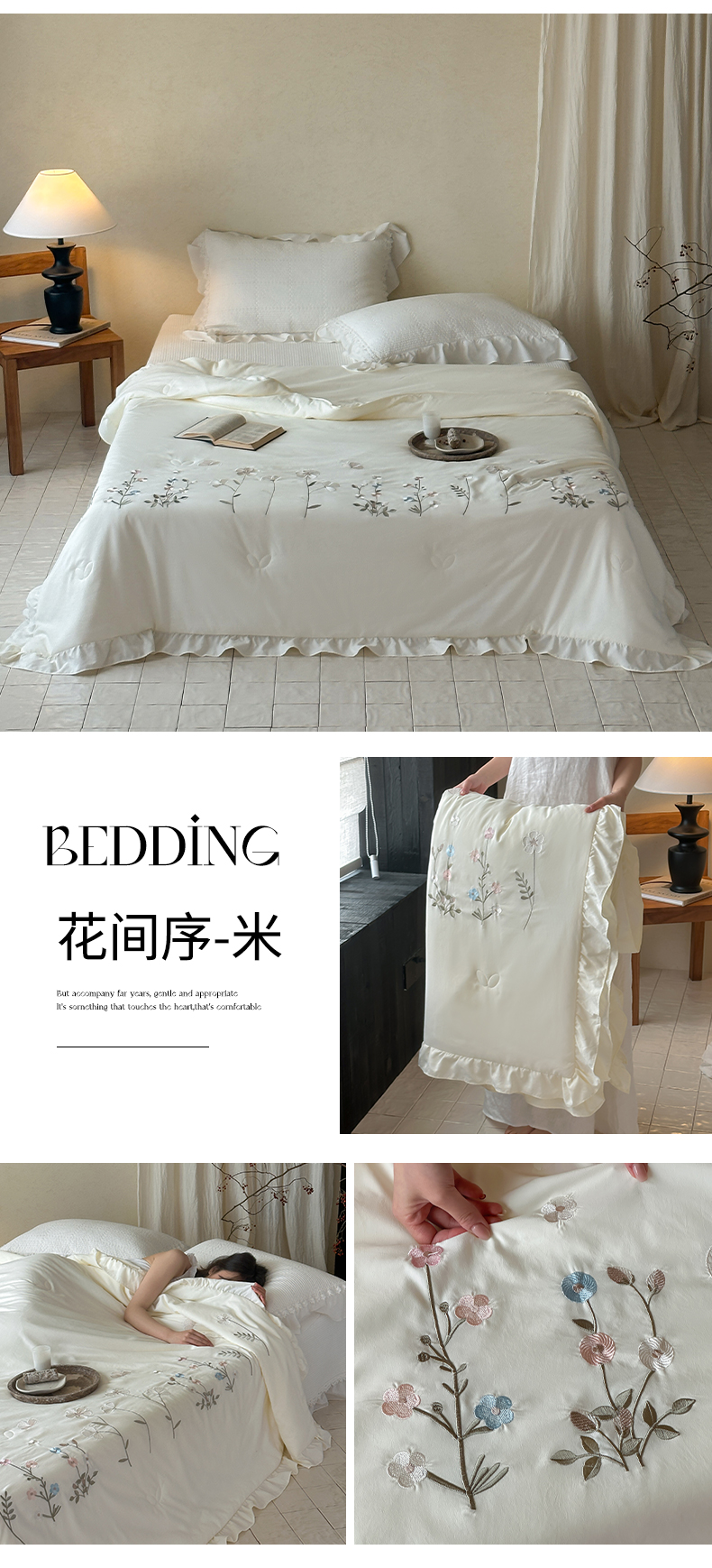 (总)一加一 2026新款亲肤凉感花边绣花大豆夏被夏凉被空调被四件套-花间序