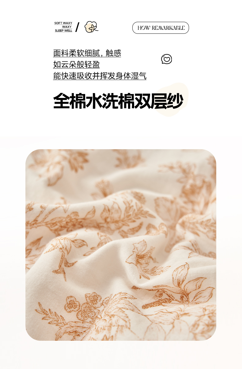 (总)早晨家纺 2026新款全棉双层纱四件套水洗棉法式复古纯棉床上用品