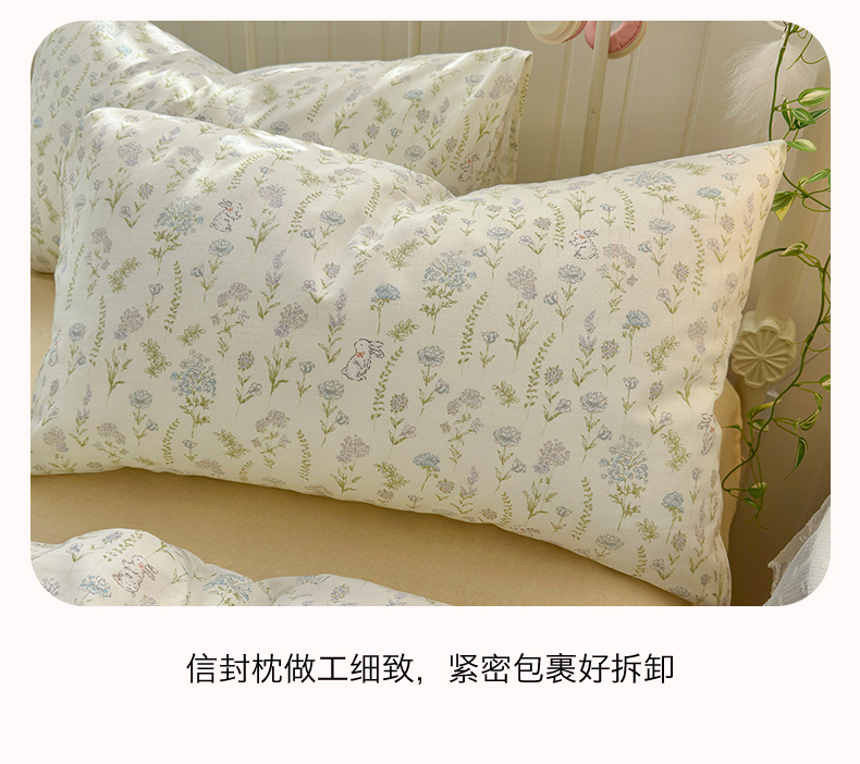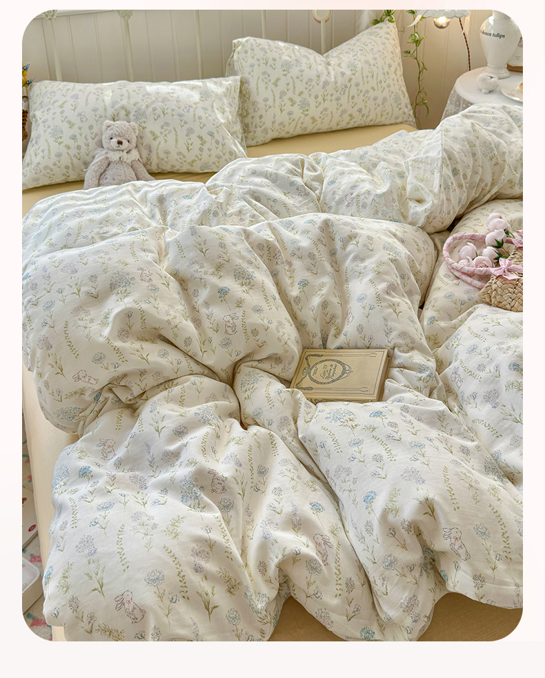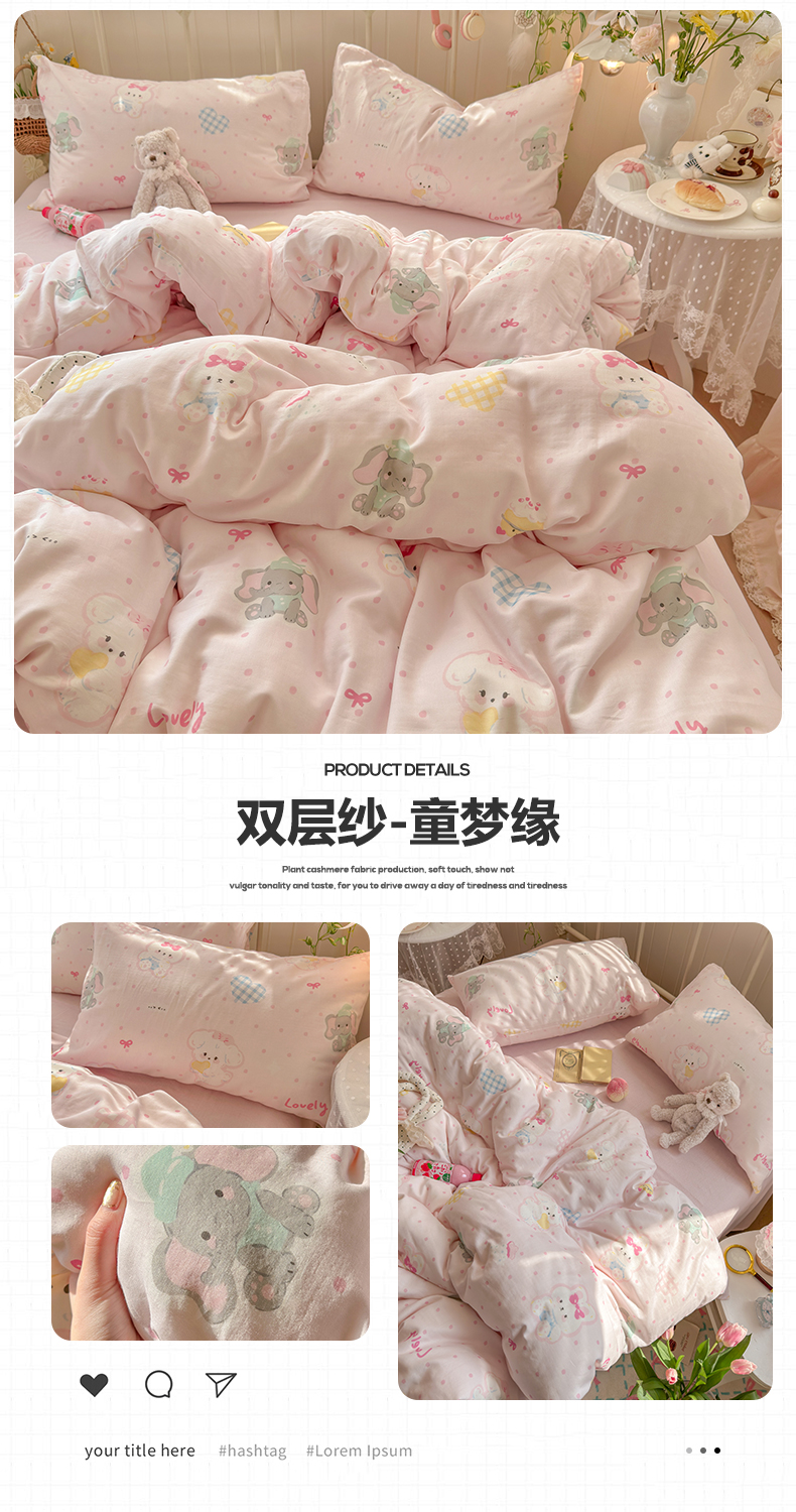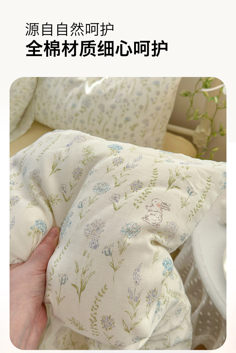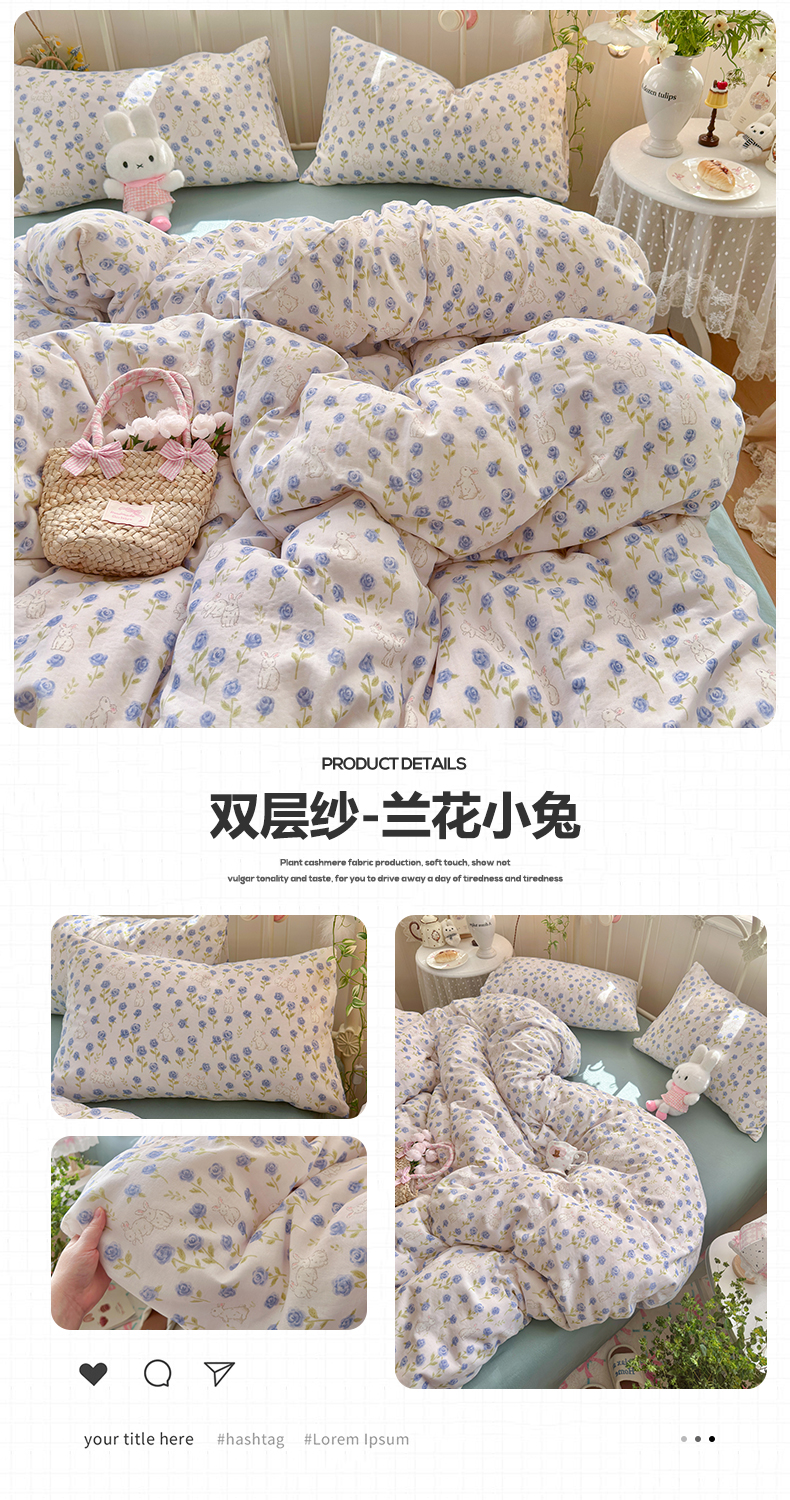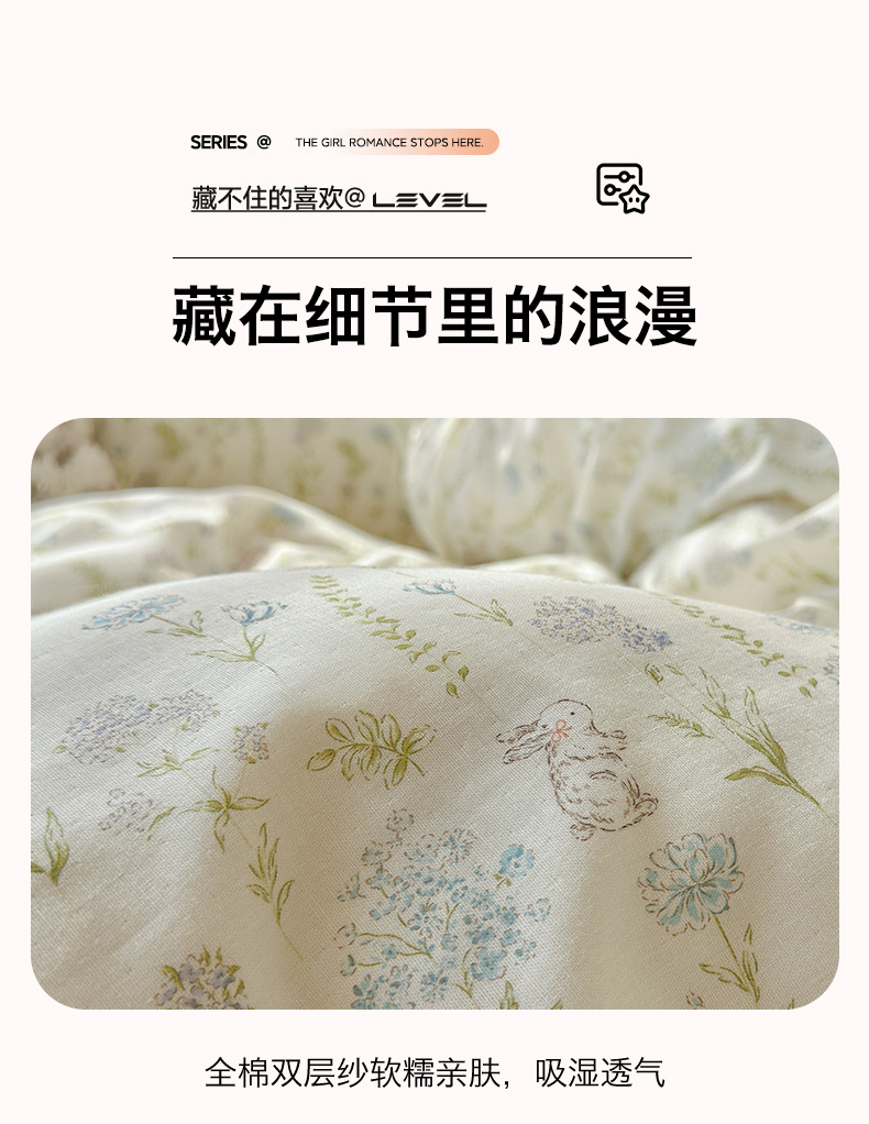 当前位置: 91家纺网 > 商品网购 > 床品套件 > 四件套 > 全棉普通四件套 > 名兮家居 2026春夏新款全棉纯棉A类双层纱四件套 双层纱-晴天兔
