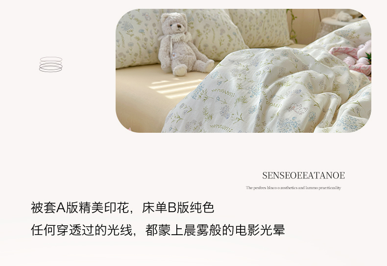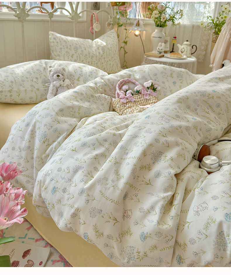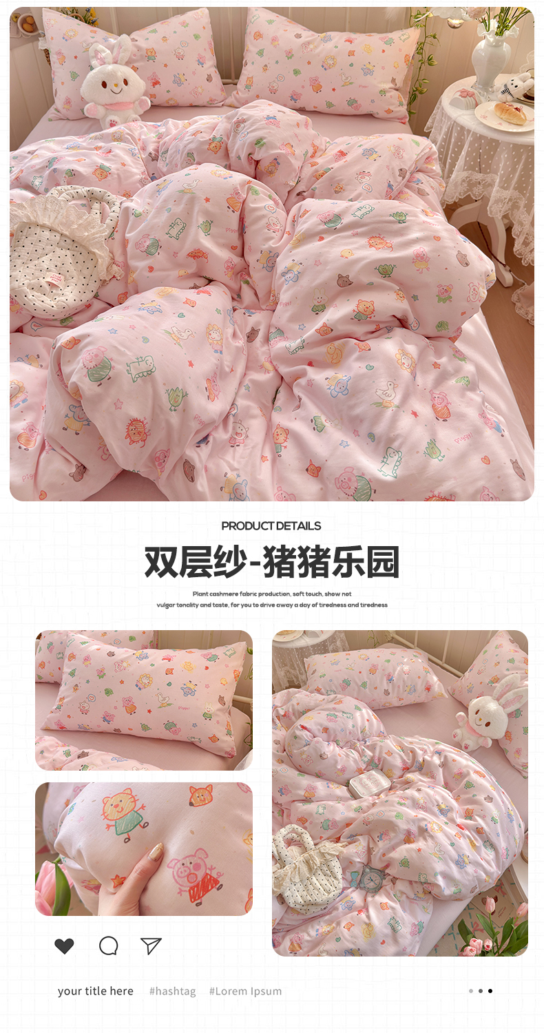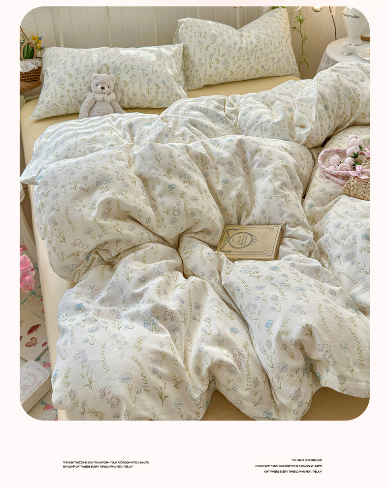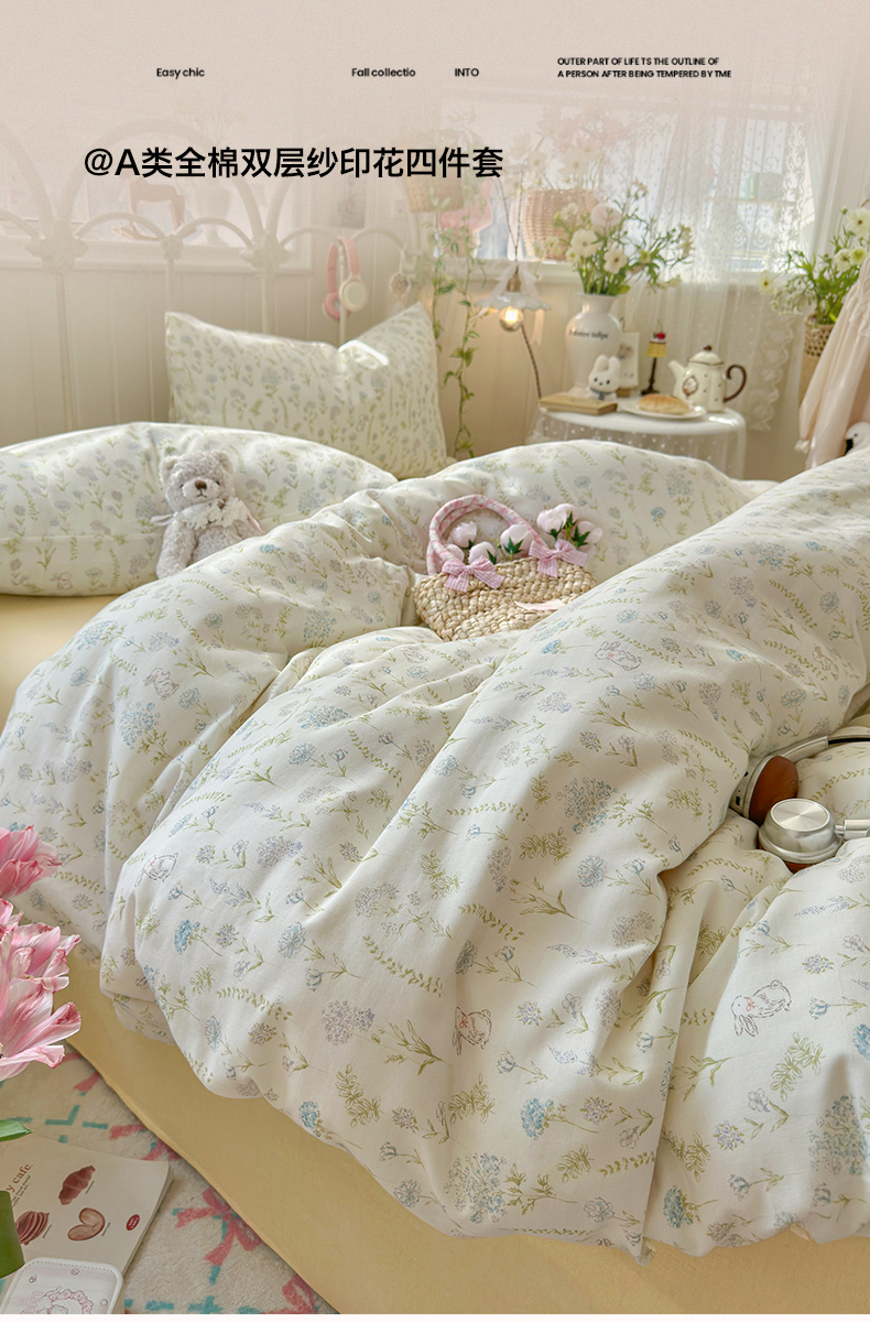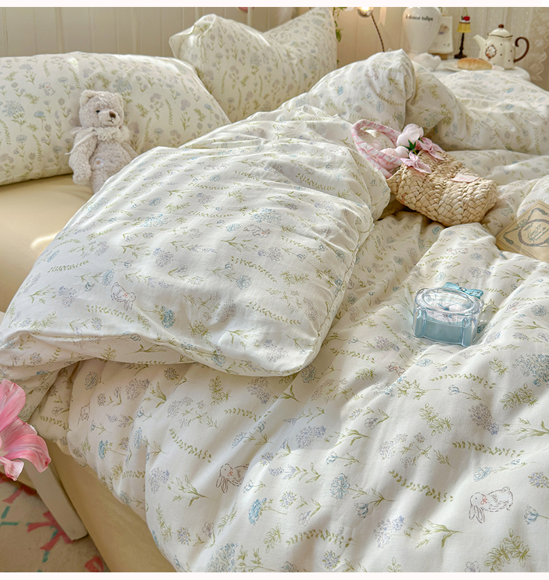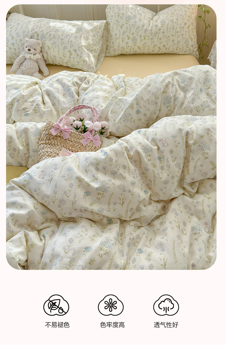 当前位置: 91家纺网 > 商品网购 > 床品套件 > 四件套 > 全棉普通四件套 > 名兮家居 2026春夏新款全棉纯棉A类双层纱四件套 双层纱-晴天兔