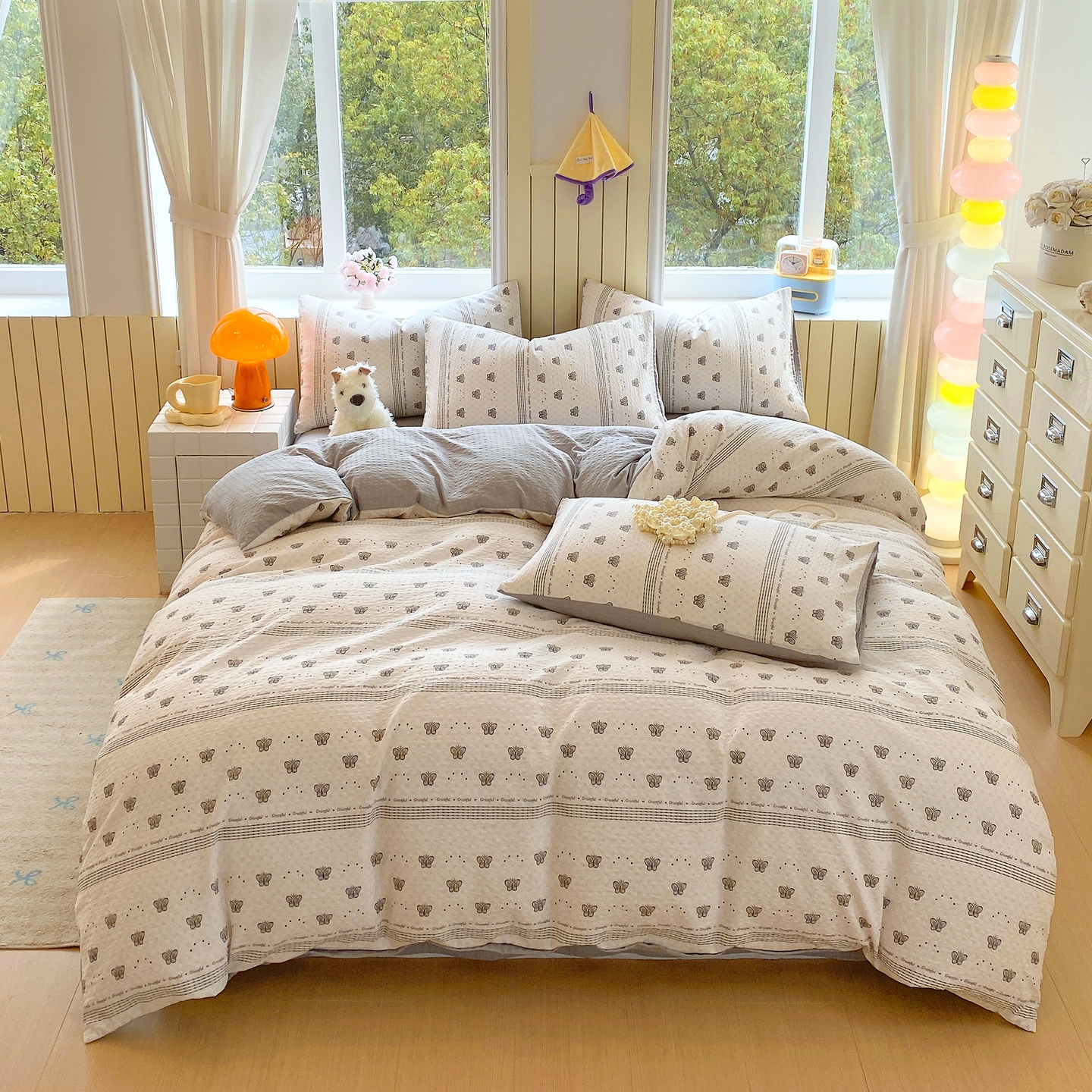当前位置: 91家纺网 > 商品网购 > 床品套件 > 四件套 > 其它四件套 > 爱橙家纺(原艾橙家纺) 2026春夏新款A类高品质110克超柔泡芙纱四件套 蝶糖