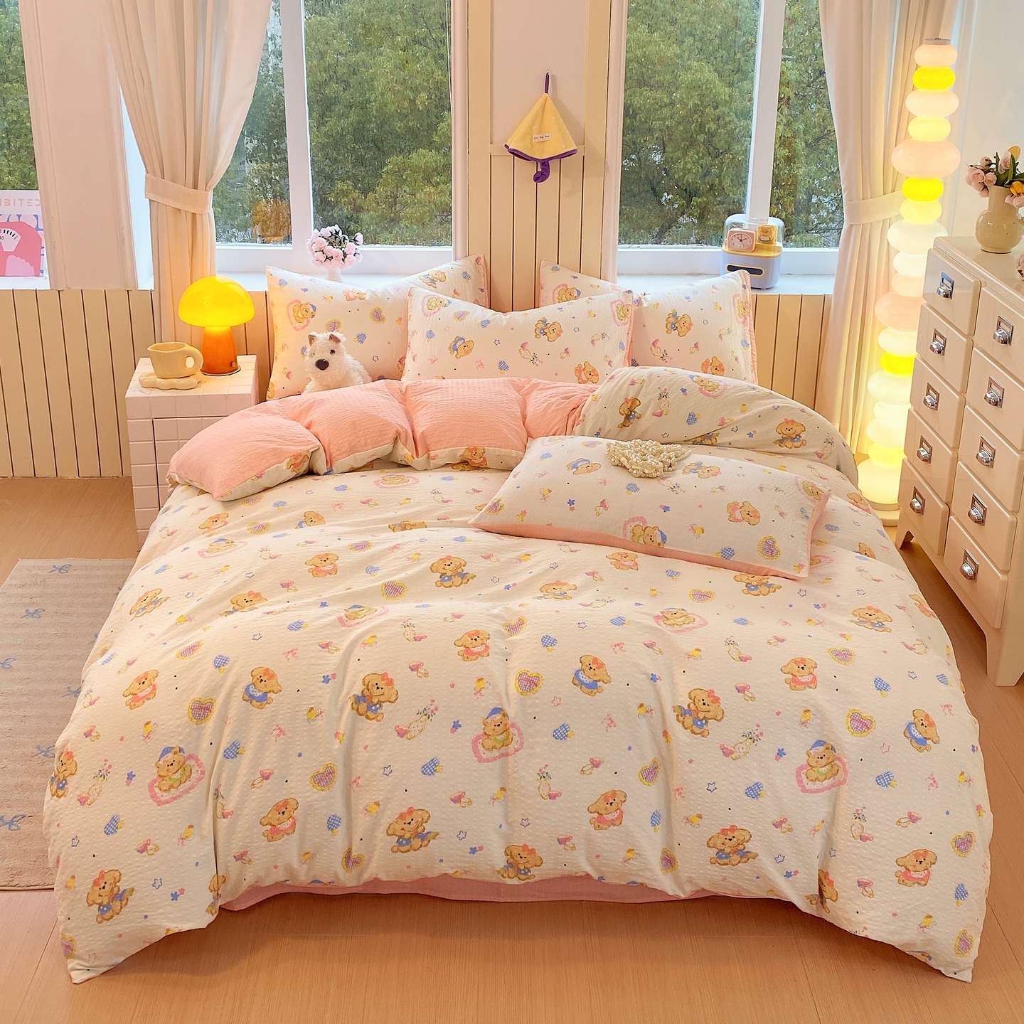 当前位置: 91家纺网 > 商品网购 > 床品套件 > 四件套 > 其它四件套 > 爱橙家纺(原艾橙家纺) 2026春夏新款A类高品质110克超柔泡芙纱四件套 曲奇小熊