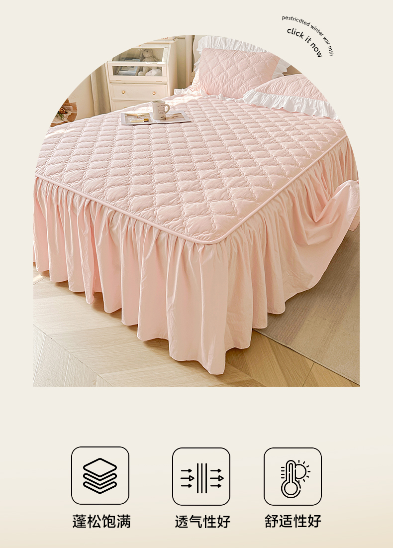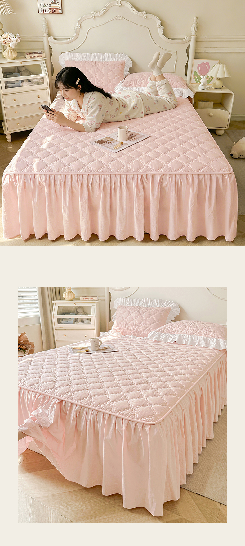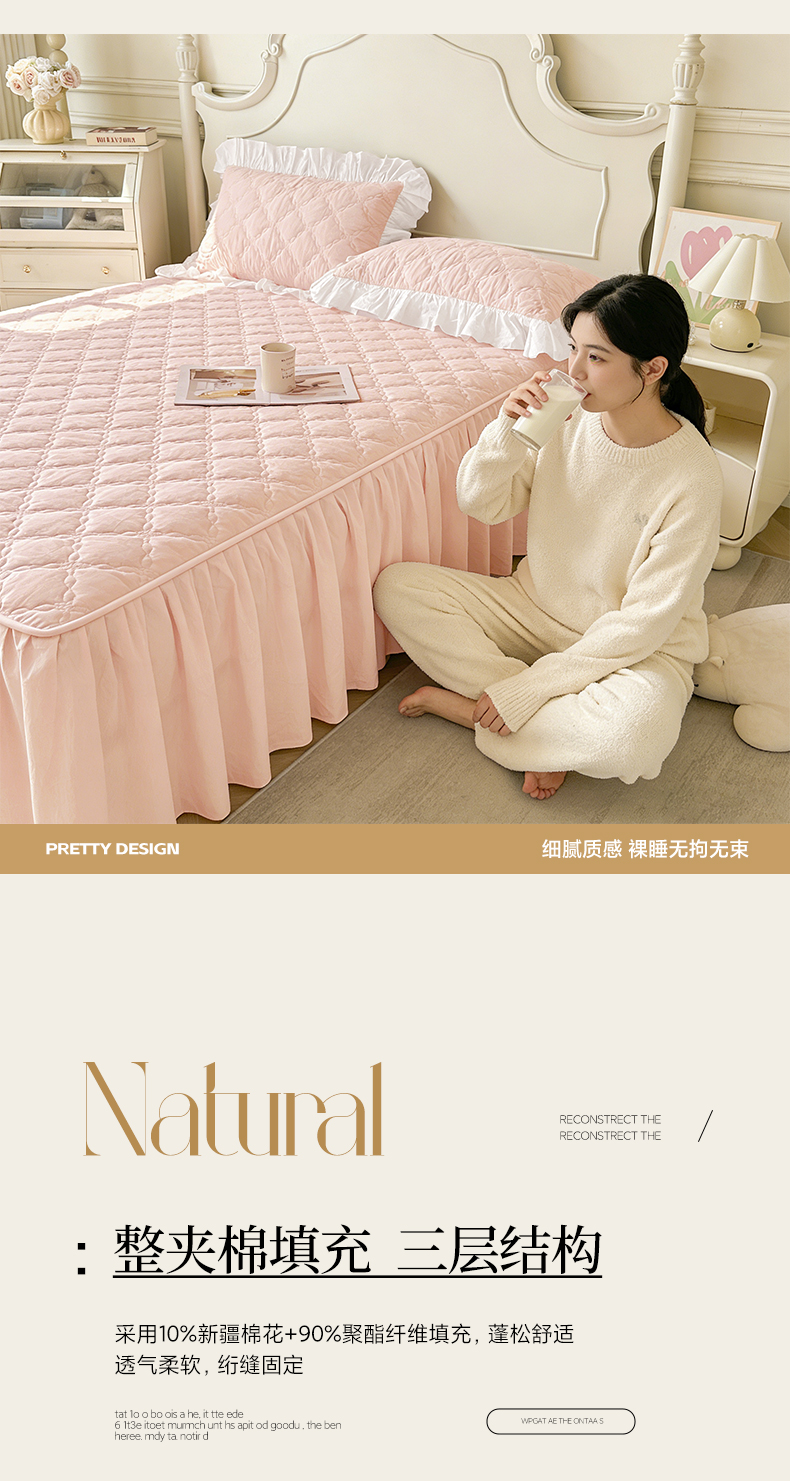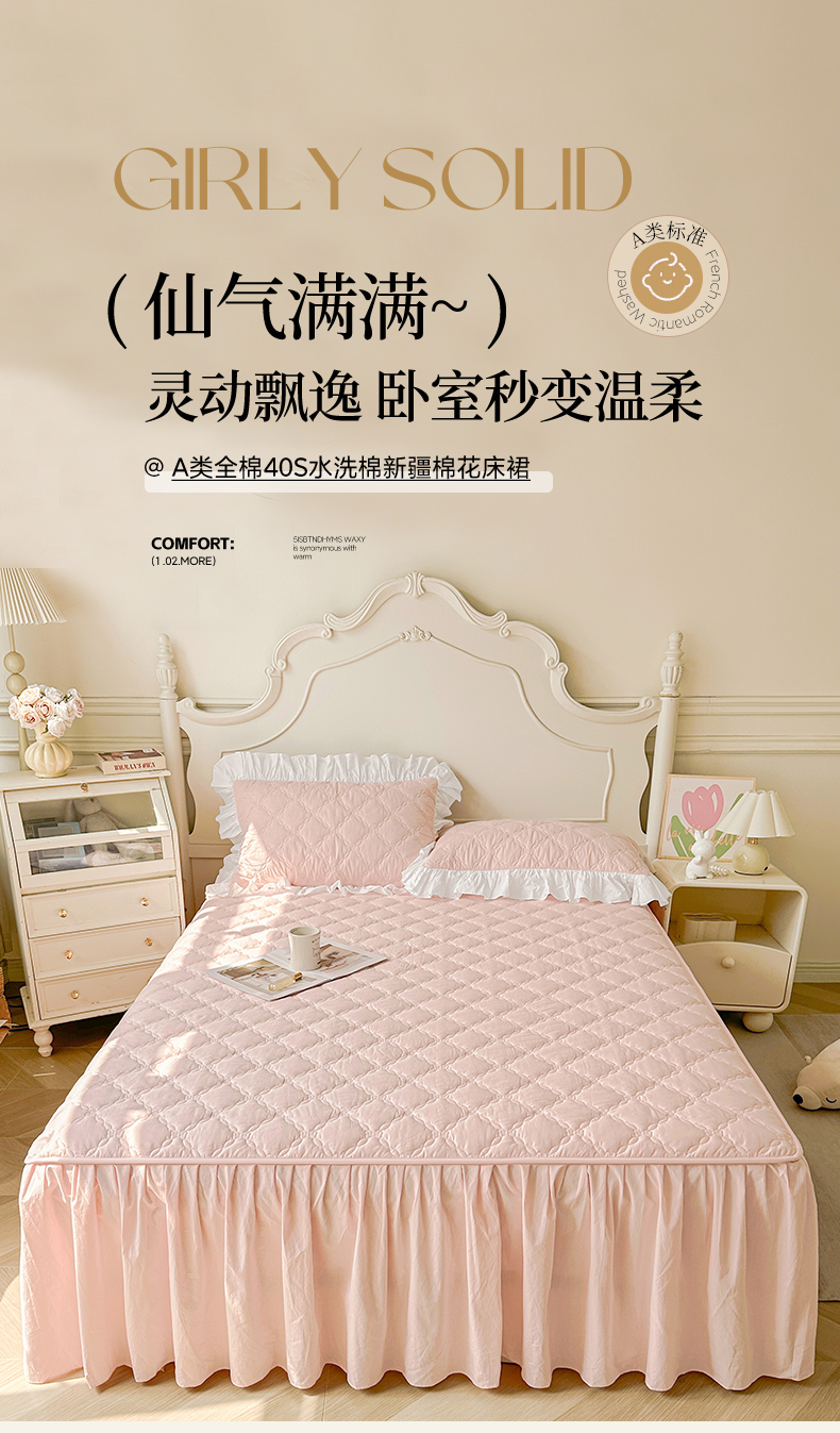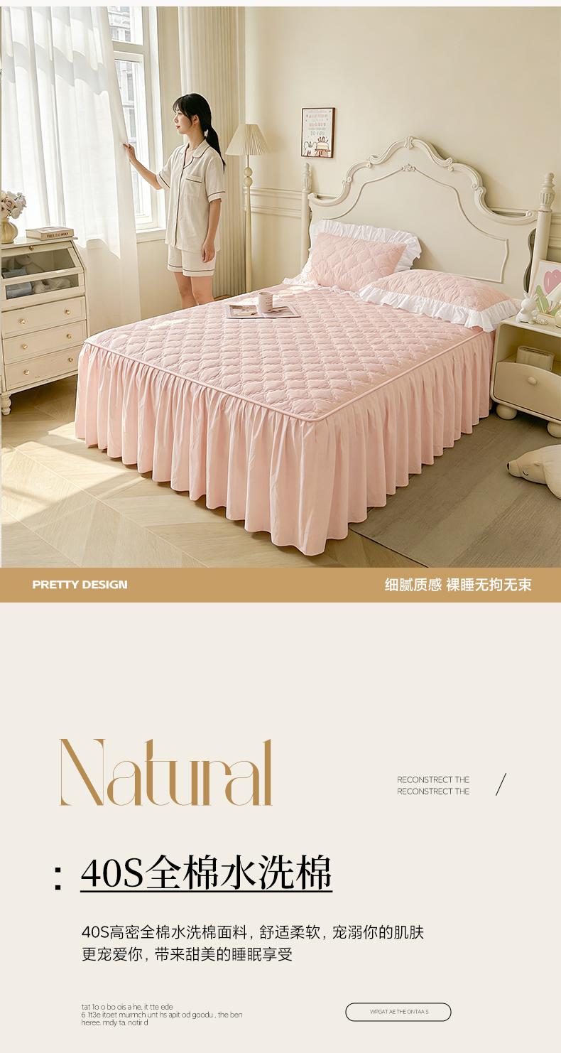 • 91家纺网 家纺一手货源 找家纺 佳笠家居 2026春夏新款A类韩版全棉水洗棉新疆棉花少女风床裙单件床裙单品单床裙-床拍图 床裙款-芝夏粉