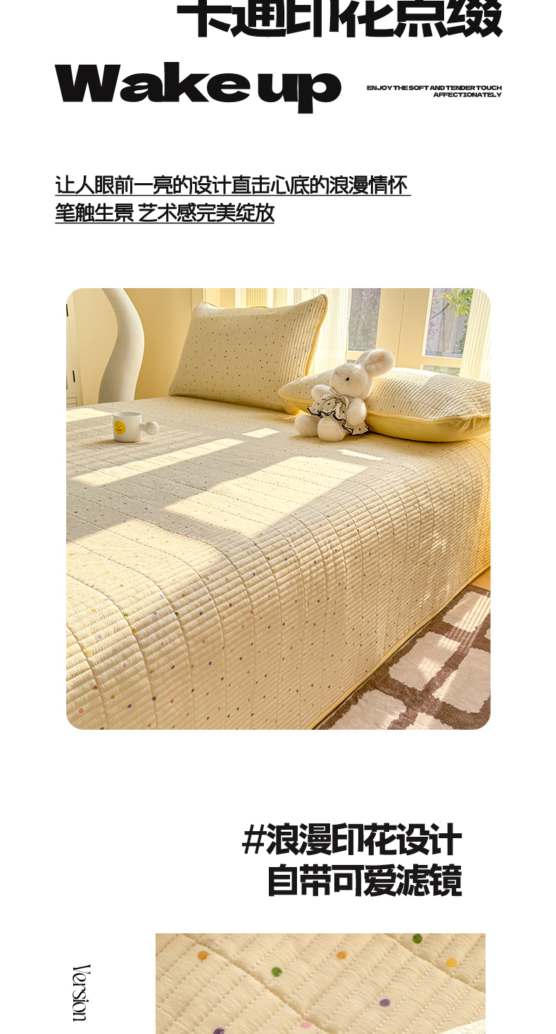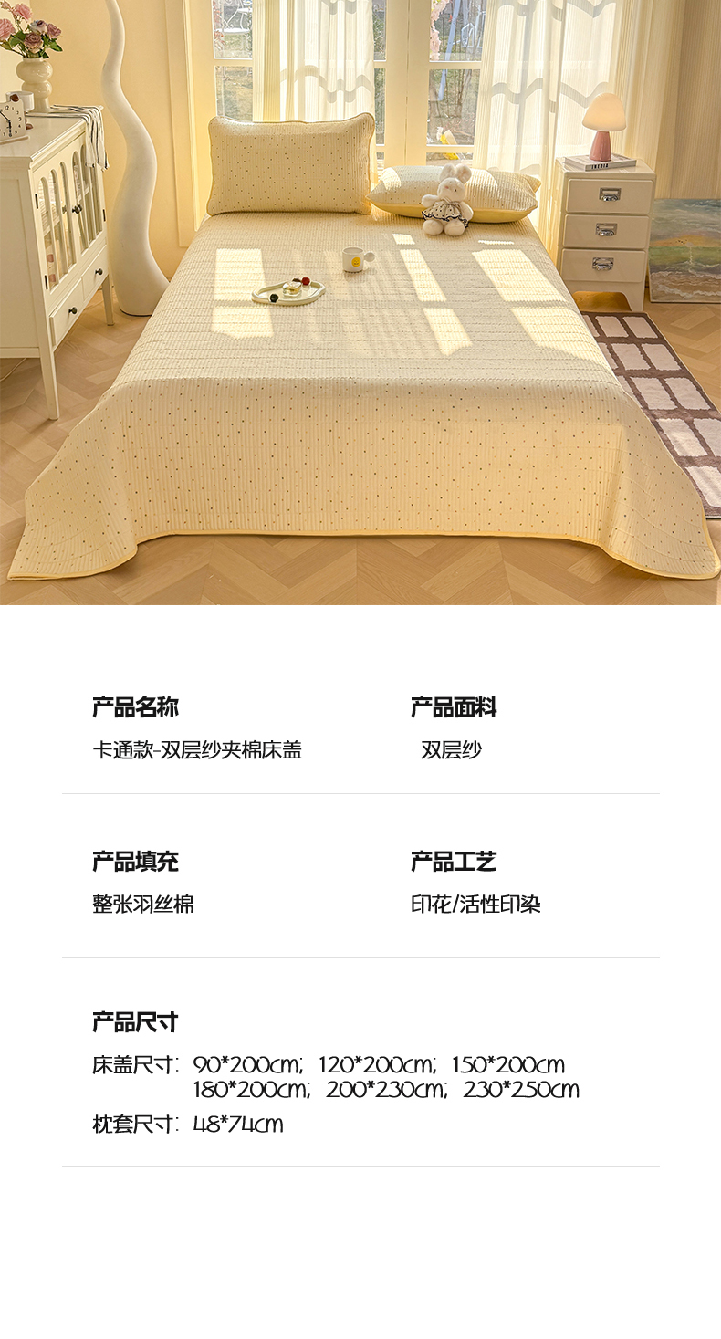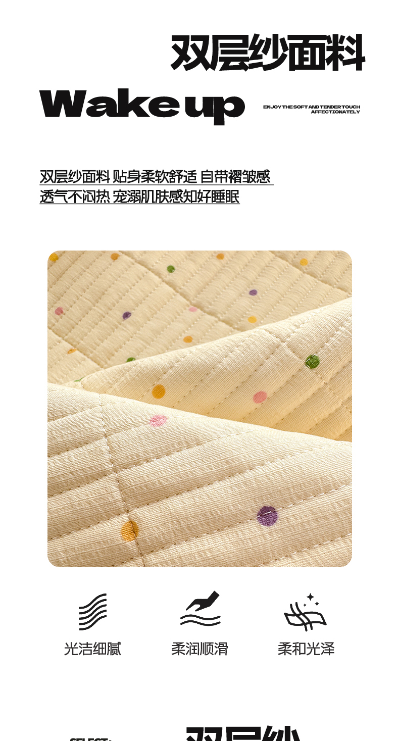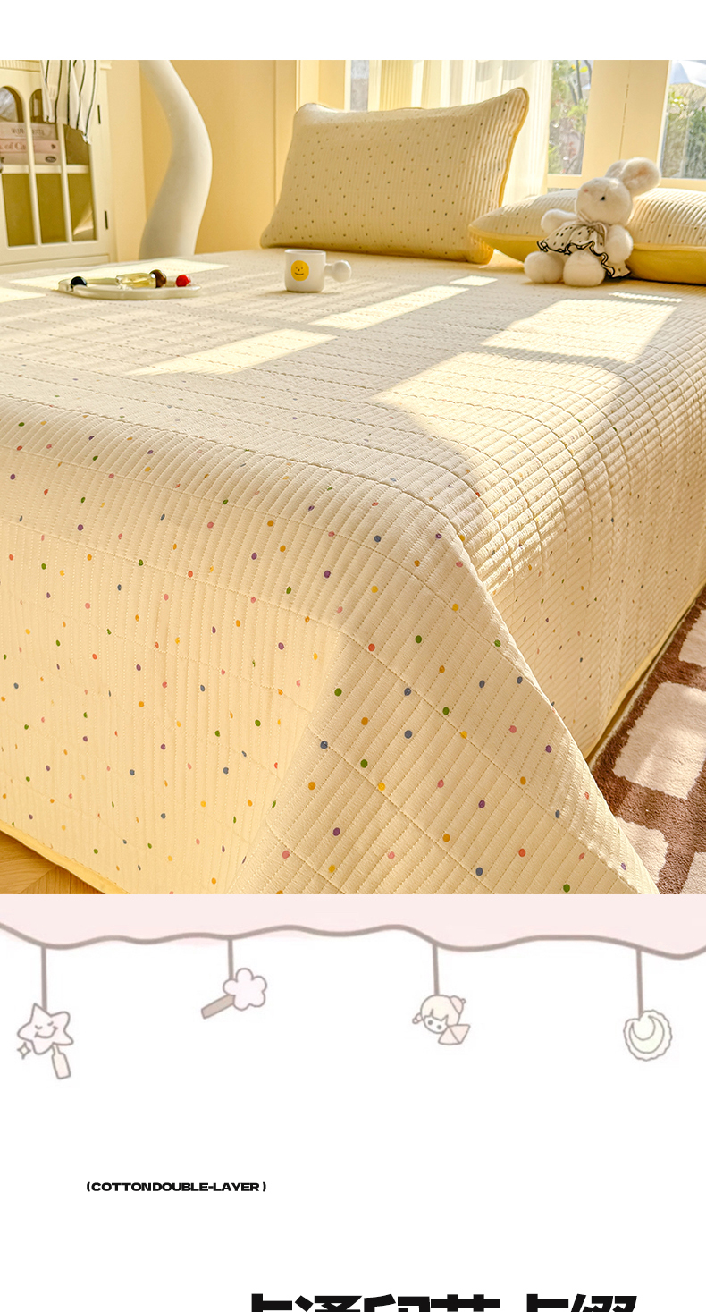 • 91家纺网 家纺一手货源 找家纺 晓时候 2026新款双层纱印花单床盖床盖单件单品床盖 多彩波点