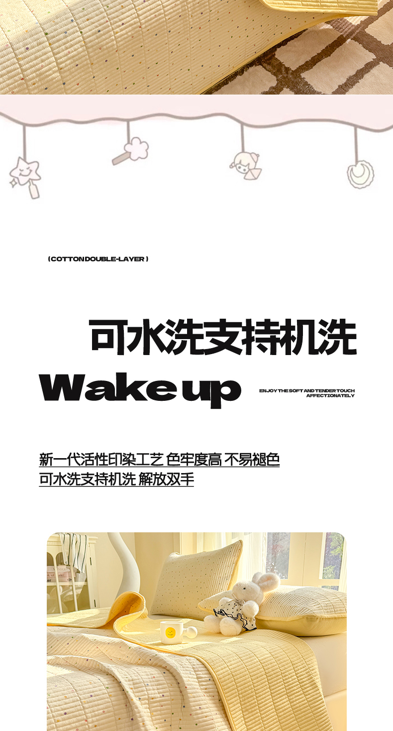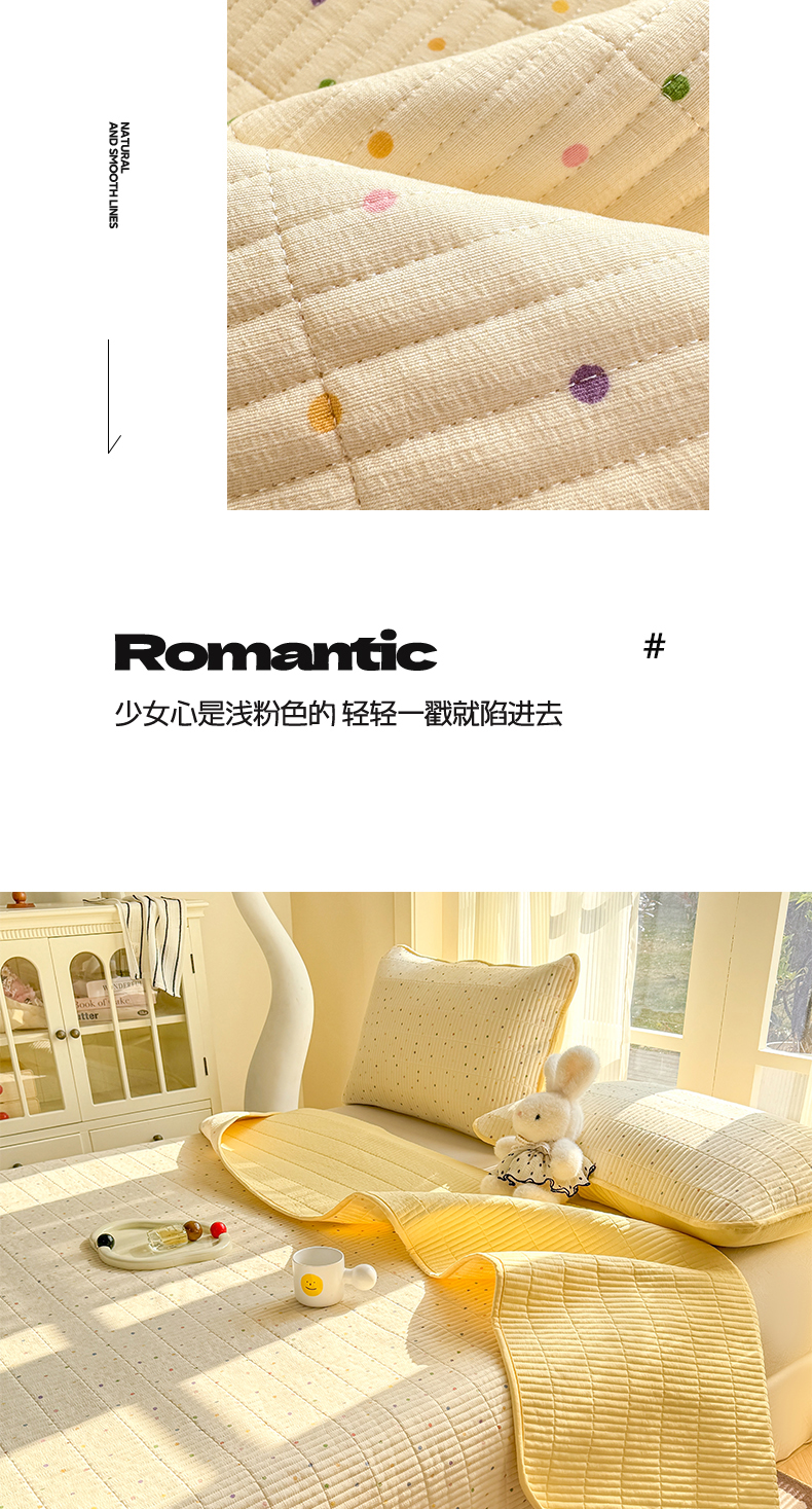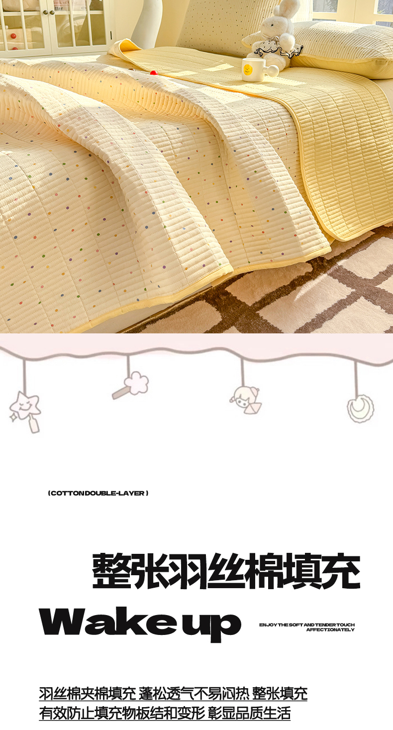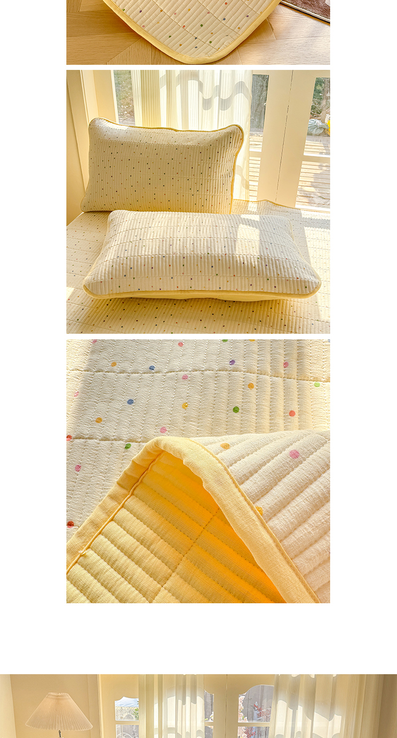 • 91家纺网 家纺一手货源 找家纺 晓时候 2026新款双层纱印花单床盖床盖单件单品床盖 多彩波点