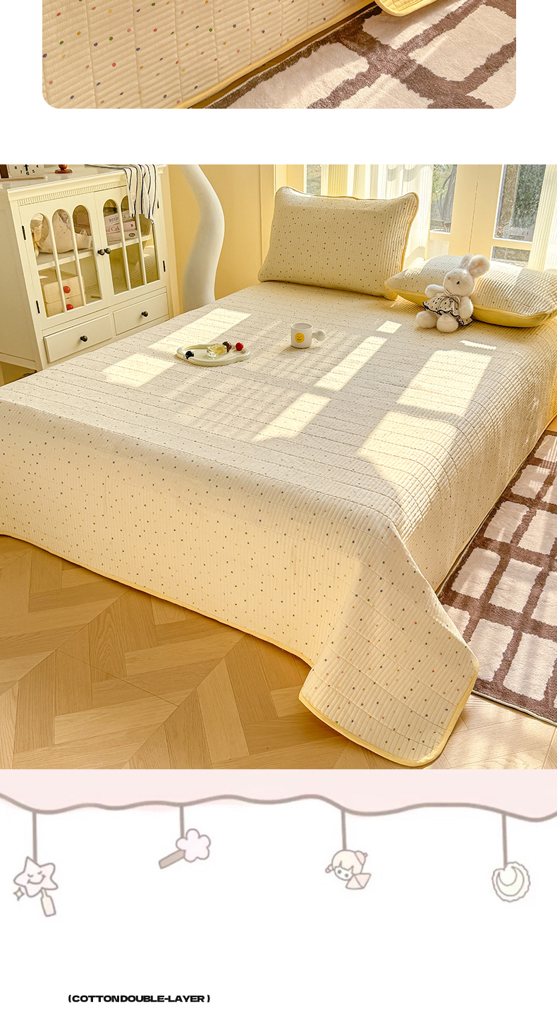 晓时候 2026新款双层纱印花单床盖床盖单件单品床盖 多彩波点