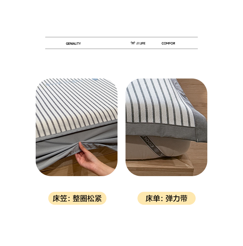 (总)雅居纺家纺 2026新款简约条纹系列凉席牛奶丝三明治底冰丝凉席,简约豆沙条,简约卡其条,简约蓝条,简约亮明黄条,简约绿条