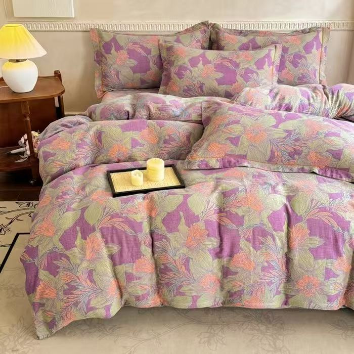 禧多家纺 2024新款亲肤舒适印花云纱棉豆豆被子被芯 花语,花语