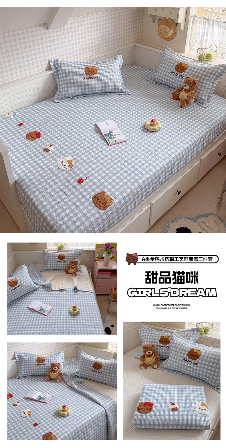 (总)暖生活 2026新款工艺款全棉水洗棉床盖单品床盖床盖单件,组合图仅做展示不可下单,快乐小熊,萌宝星星,木马小咪,三伙伴,绅士小狗,甜品猫咪,晚安星星,小树喵