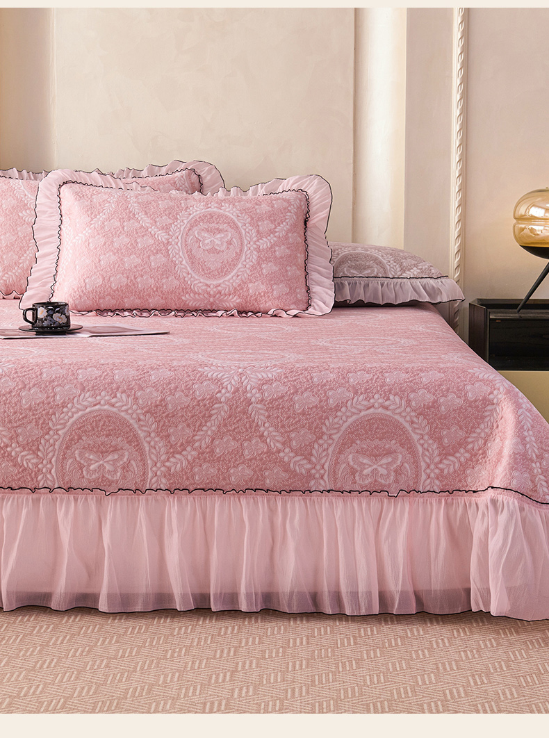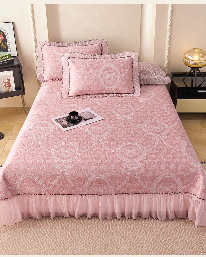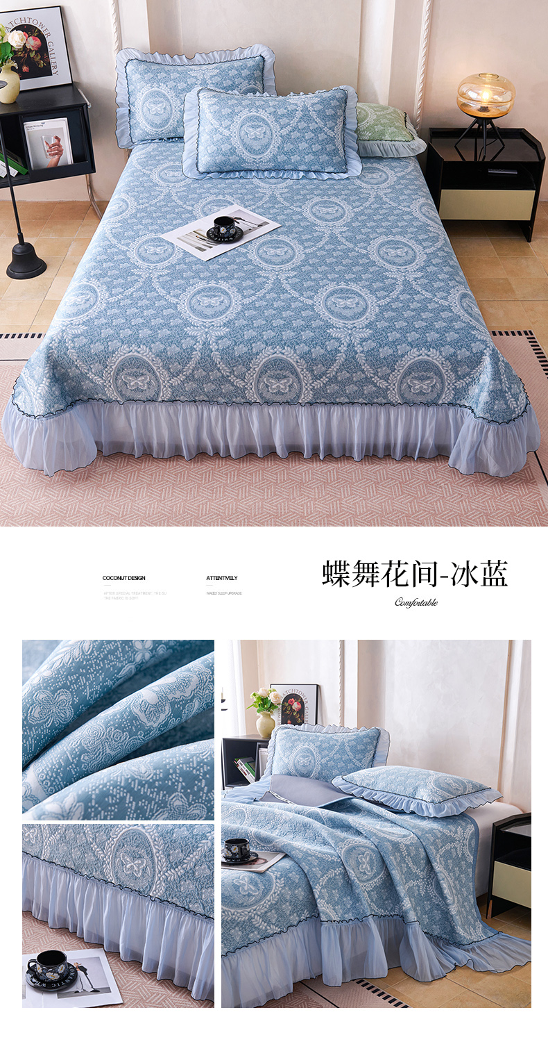 (总)梵克保罗 2026春夏新款PE乙纶凉感因子冰豆豆韩系蕾丝提花床裙款凉席三件套-韩系系列,组合图仅供展示不可下单,韩系-冰川灰,韩系-冰川蓝,韩系-清水绿,韩系-仙女粉,韩系-玉石白