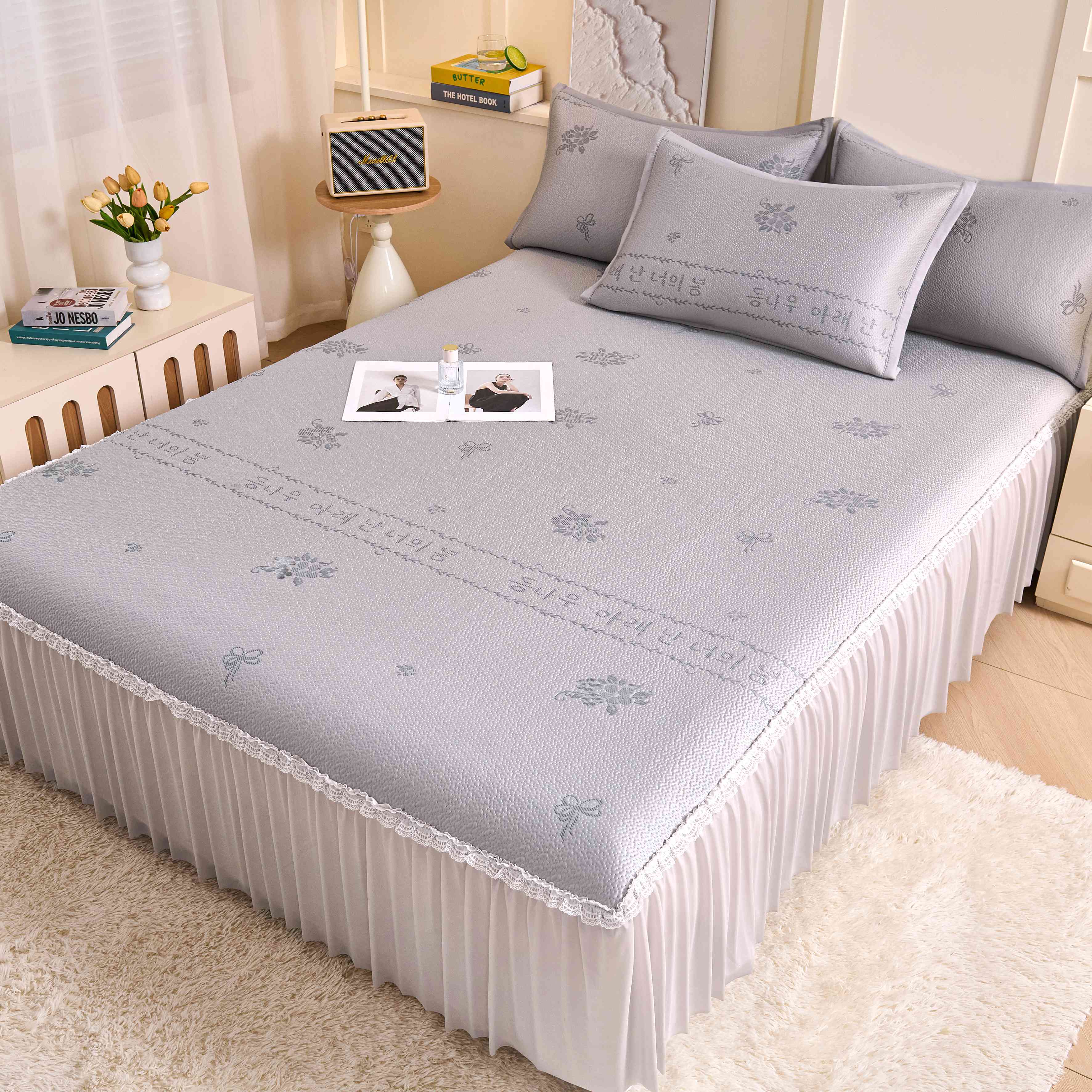 (总)梵克保罗 2026春夏新款PE乙纶凉感因子冰豆豆韩系蕾丝提花床裙款凉席三件套-韩系系列,组合图仅供展示不可下单,韩系-冰川灰,韩系-冰川蓝,韩系-清水绿,韩系-仙女粉,韩系-玉石白