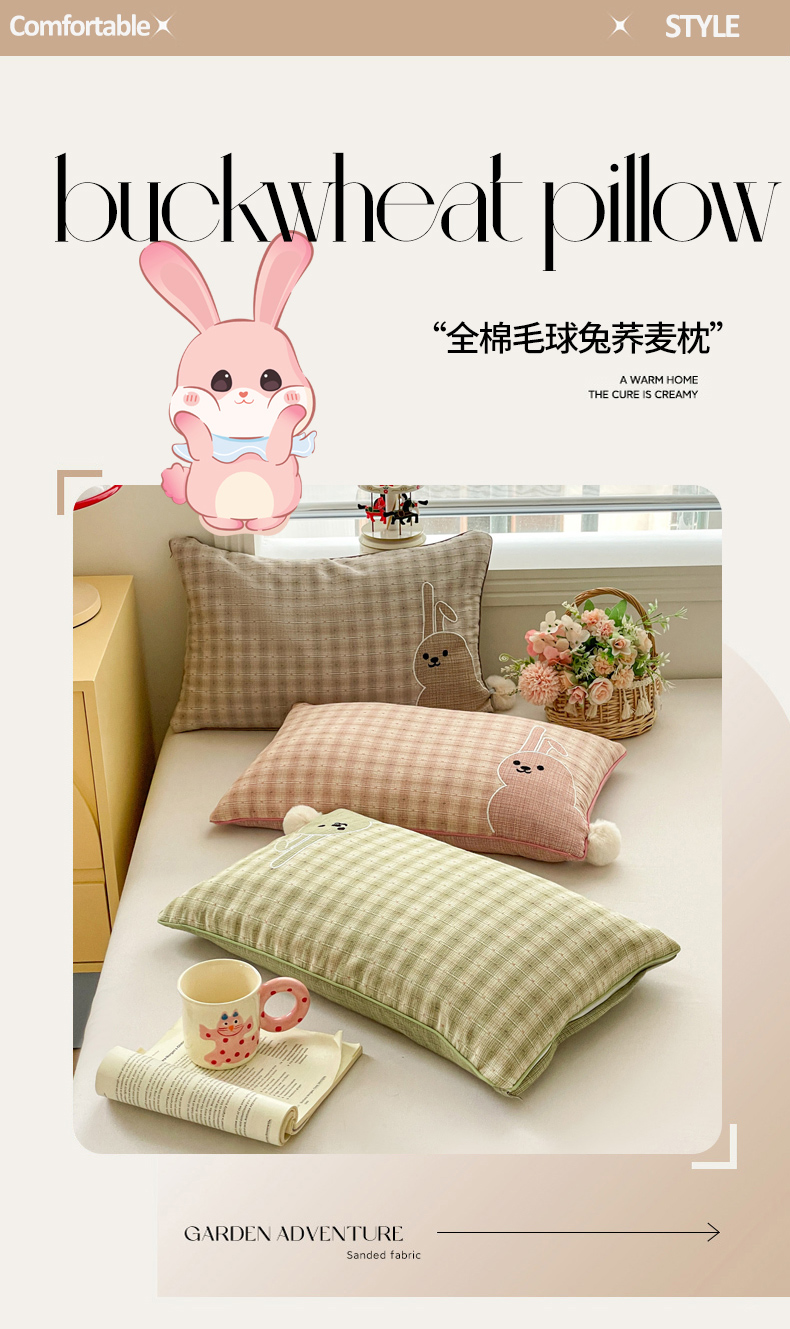 商品名称:(总)梦叶草 2026新款全棉毛球兔荞麦枕枕头枕芯