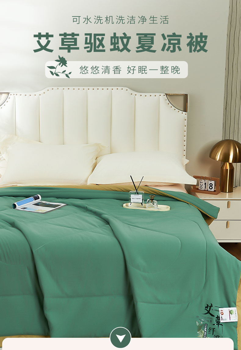 (总)憨豆家纺 2026新款艾草区驱蚊夏被空调被夏凉被,橄榄绿,高级灰,和田黄,火欧橘,暖心粉,天际蓝