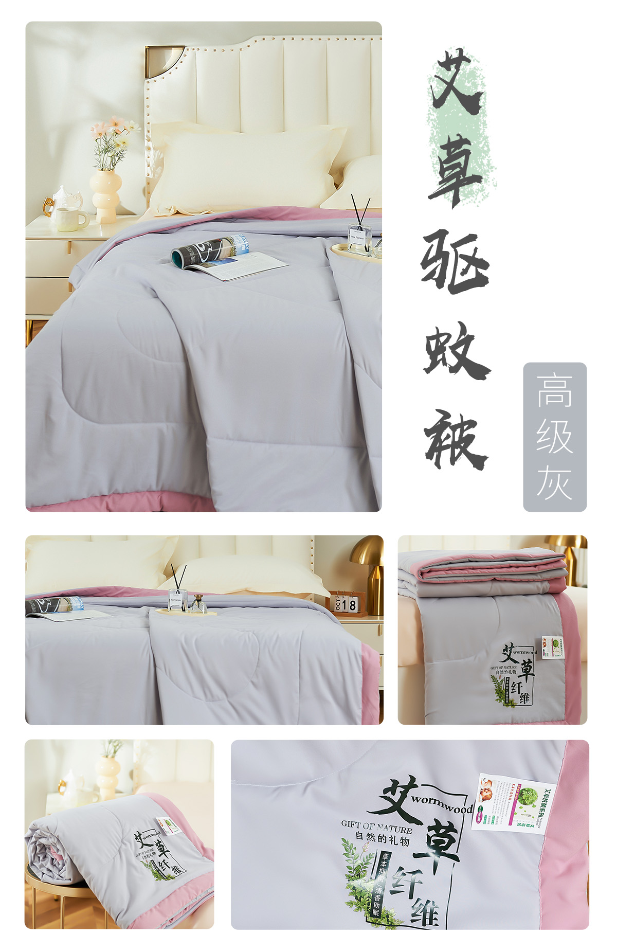 (总)憨豆家纺 2026新款艾草夏被空调被薄被子艾草驱蚊夏凉被礼品被子,橄榄绿,高级灰,和田黄,火欧橘,暖心粉,天际蓝