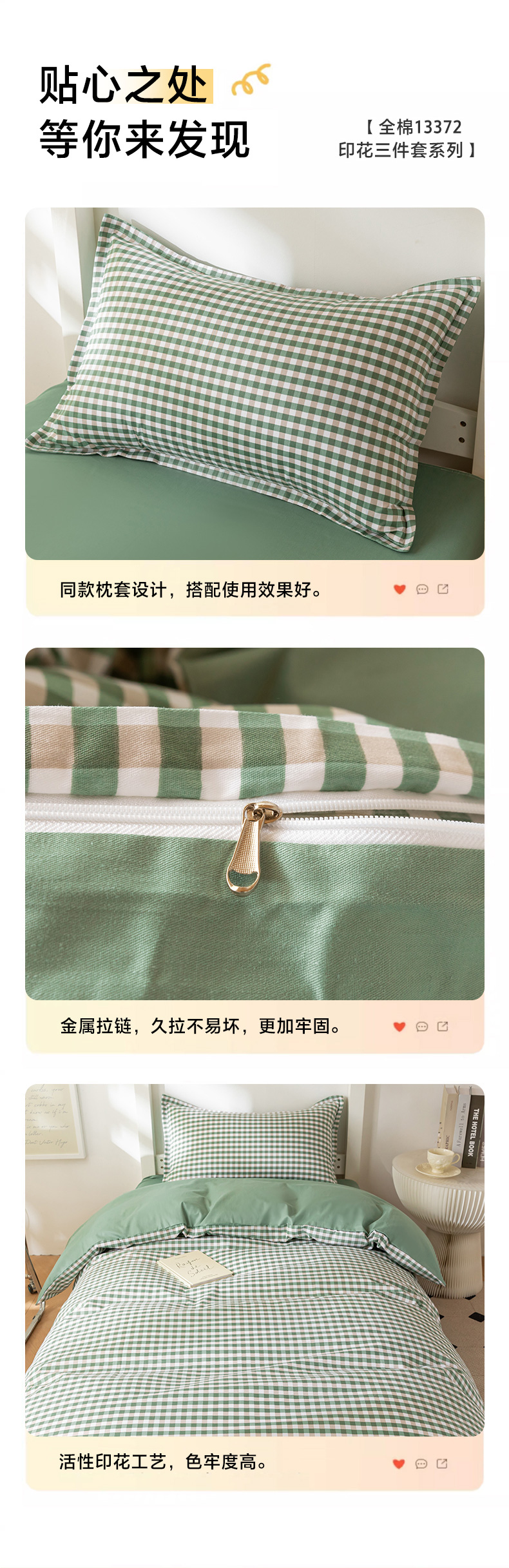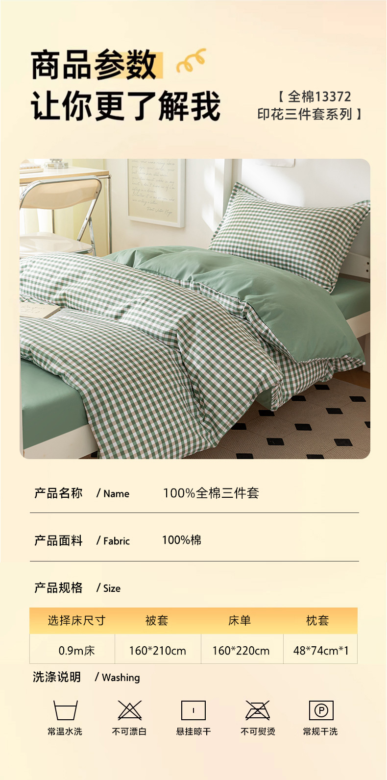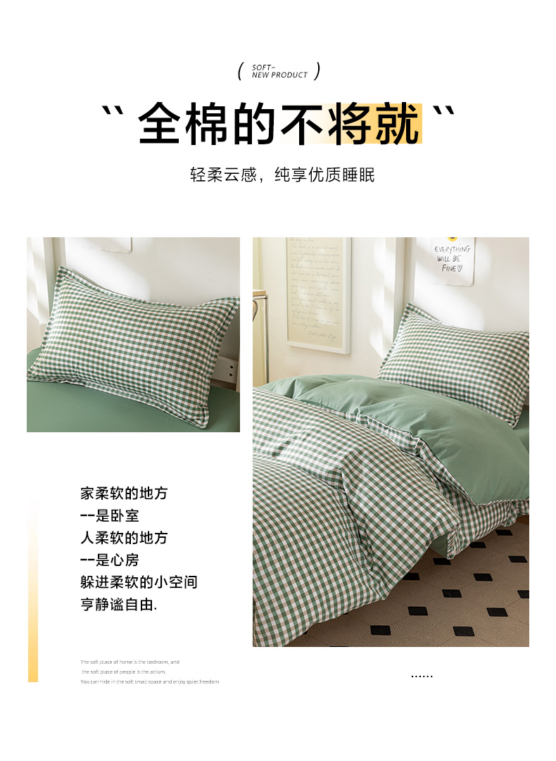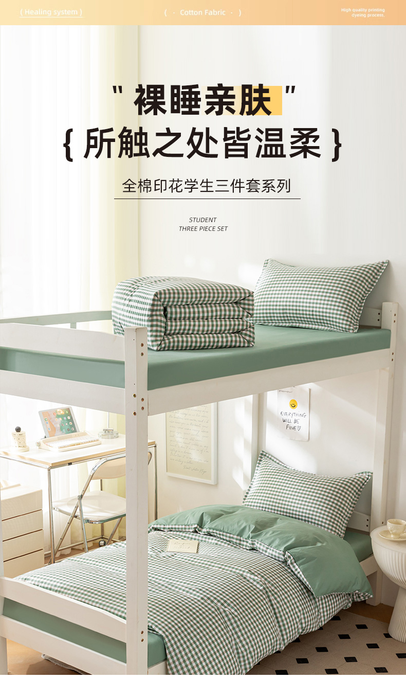 当前位置: 91家纺网 > 商品网购 > 床品套件 > 多件套 > 多件套 > 天之爱 2026年新款13372全棉三件套学生上下铺6件套多件套绿小格