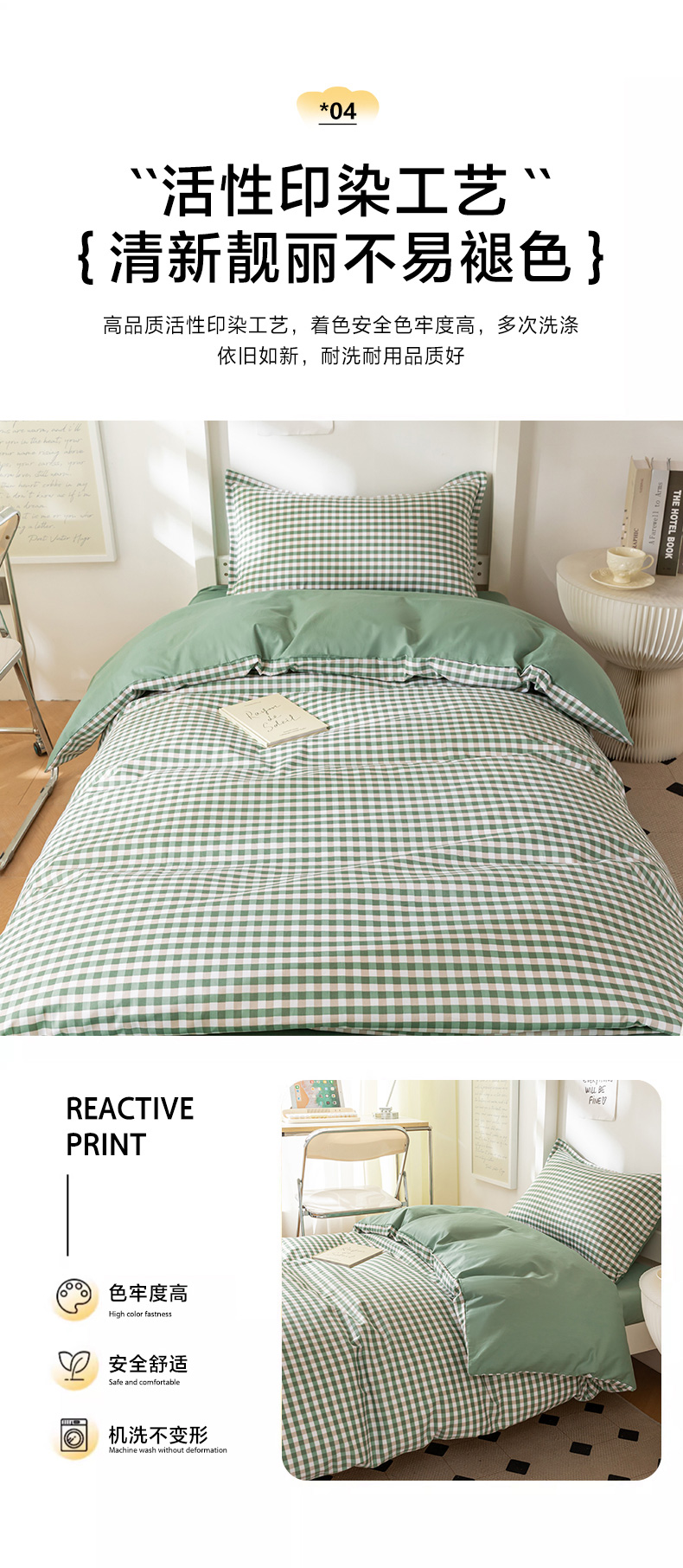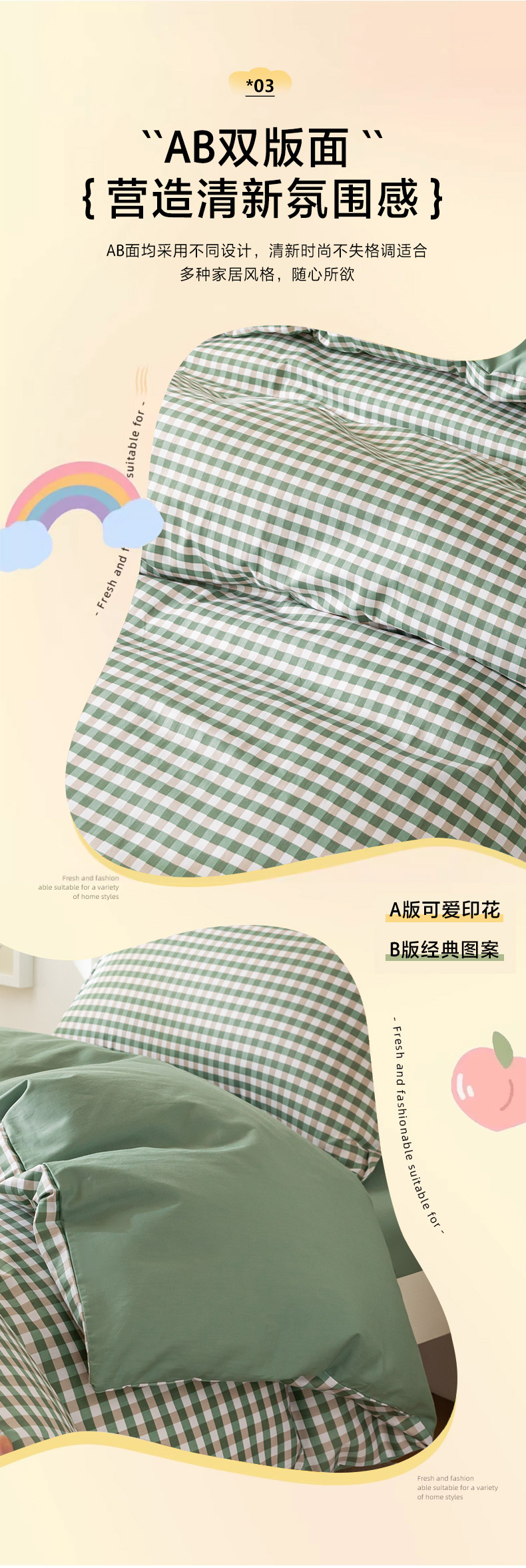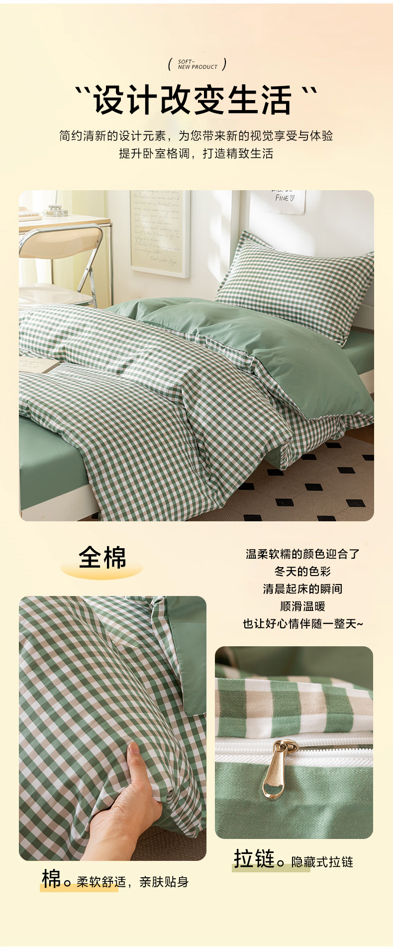当前位置: 91家纺网 > 商品网购 > 床品套件 > 多件套 > 多件套 > 天之爱 2026年新款13372全棉三件套学生上下铺6件套多件套绿小格