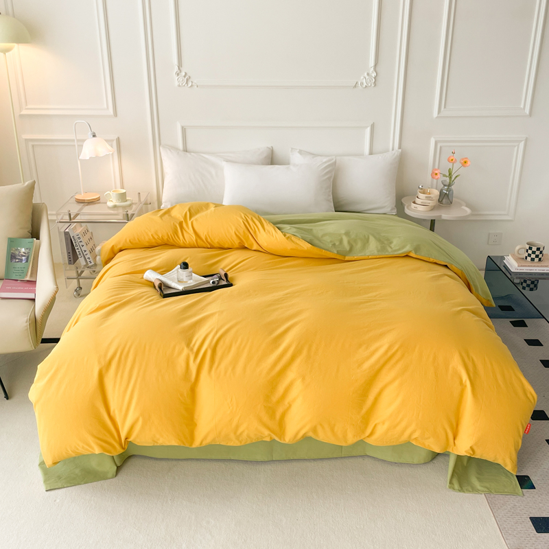 春皖家纺 2026春夏新款双拼全棉水洗棉单被套被套单件单品被套 浅黄-薄荷绿