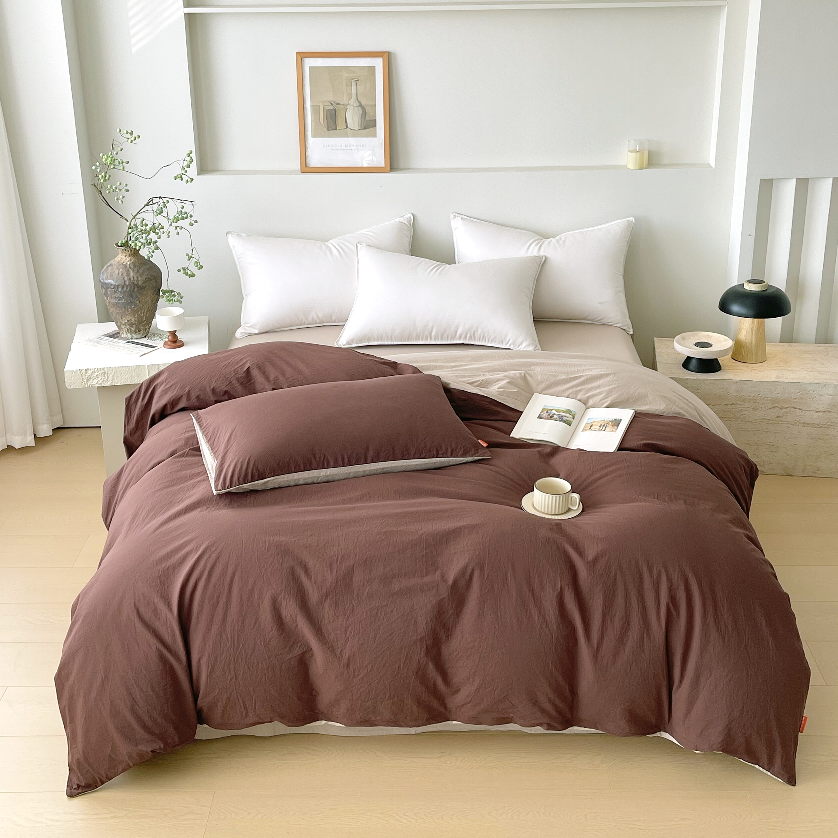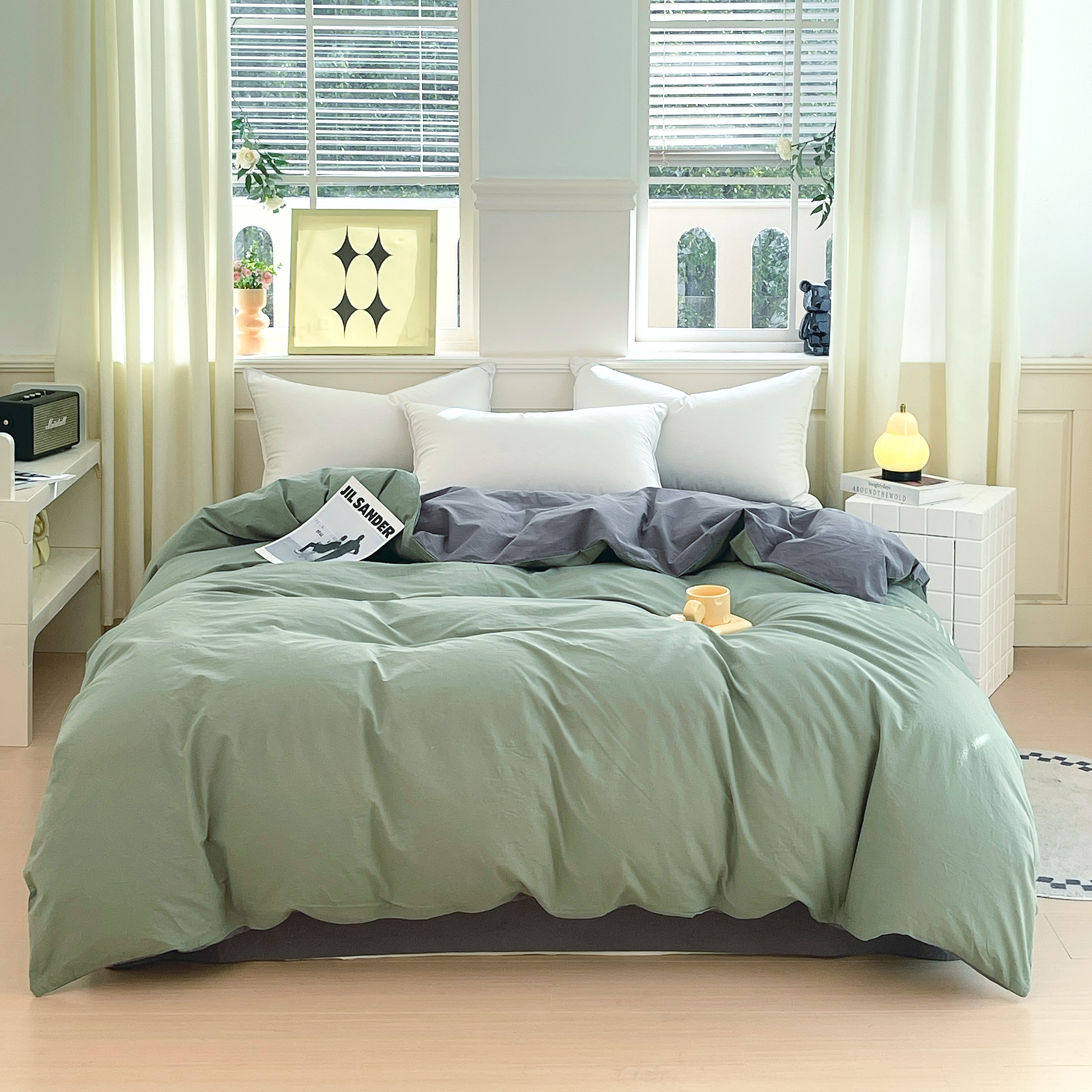 商品名称:春皖家纺 2026春夏新款双拼全棉水洗棉单被套被套单件单品被套 深灰-浅灰